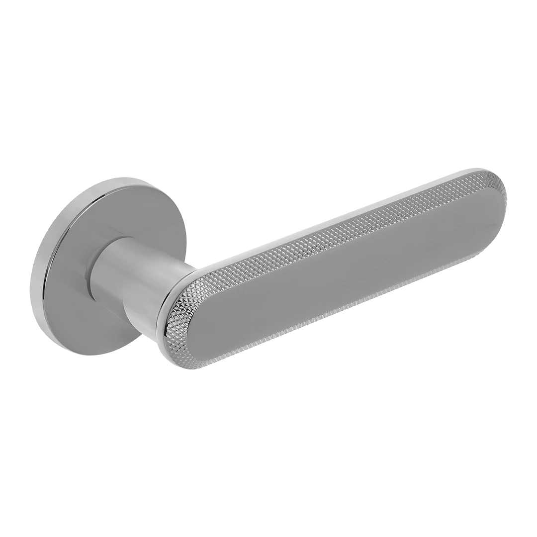 RUGOS klamka na rozecie sprawdzi się w nowoczesnych i klasycznych aranżacjach, gdzie ważna jest trwałość, komfort chwytu oraz spójność z wyglądem skrzydła drzwiowego i okuć.