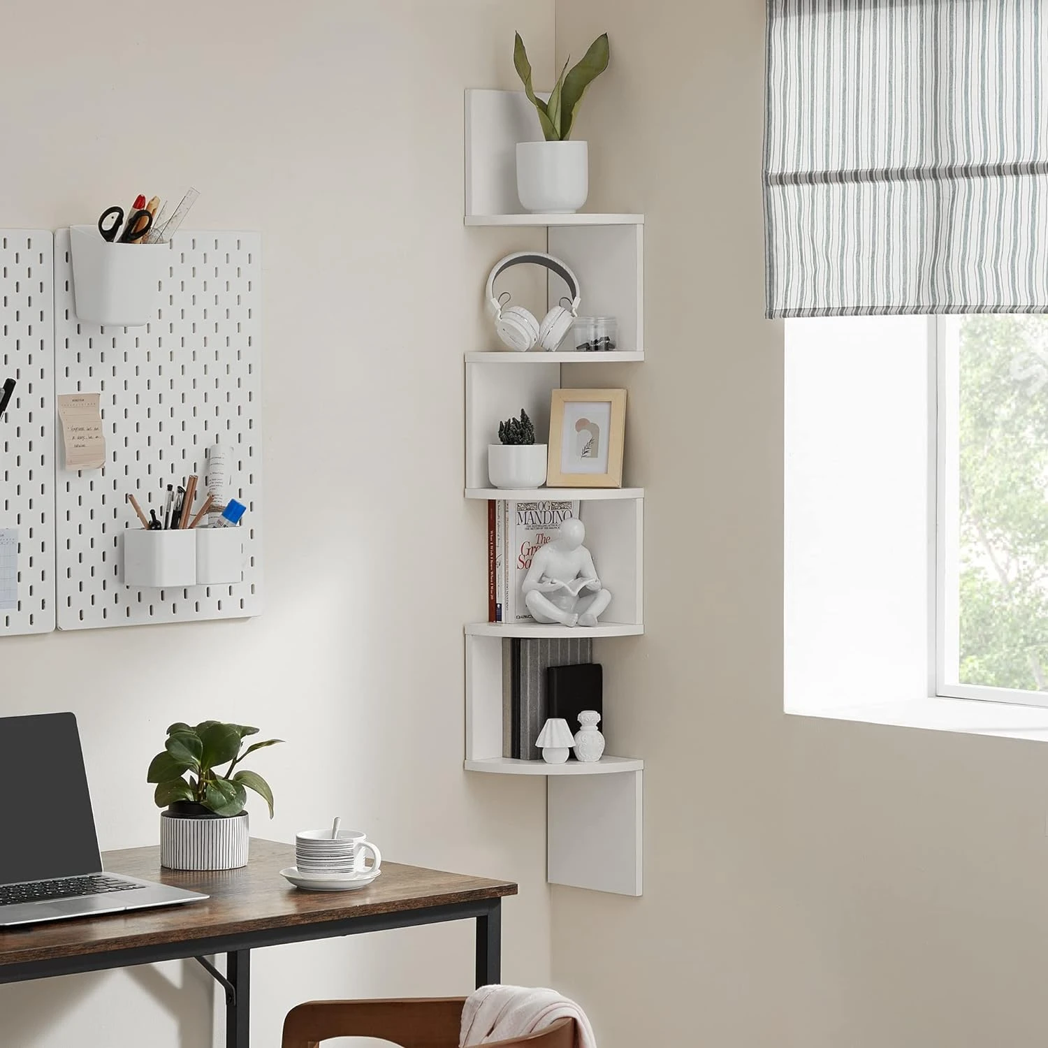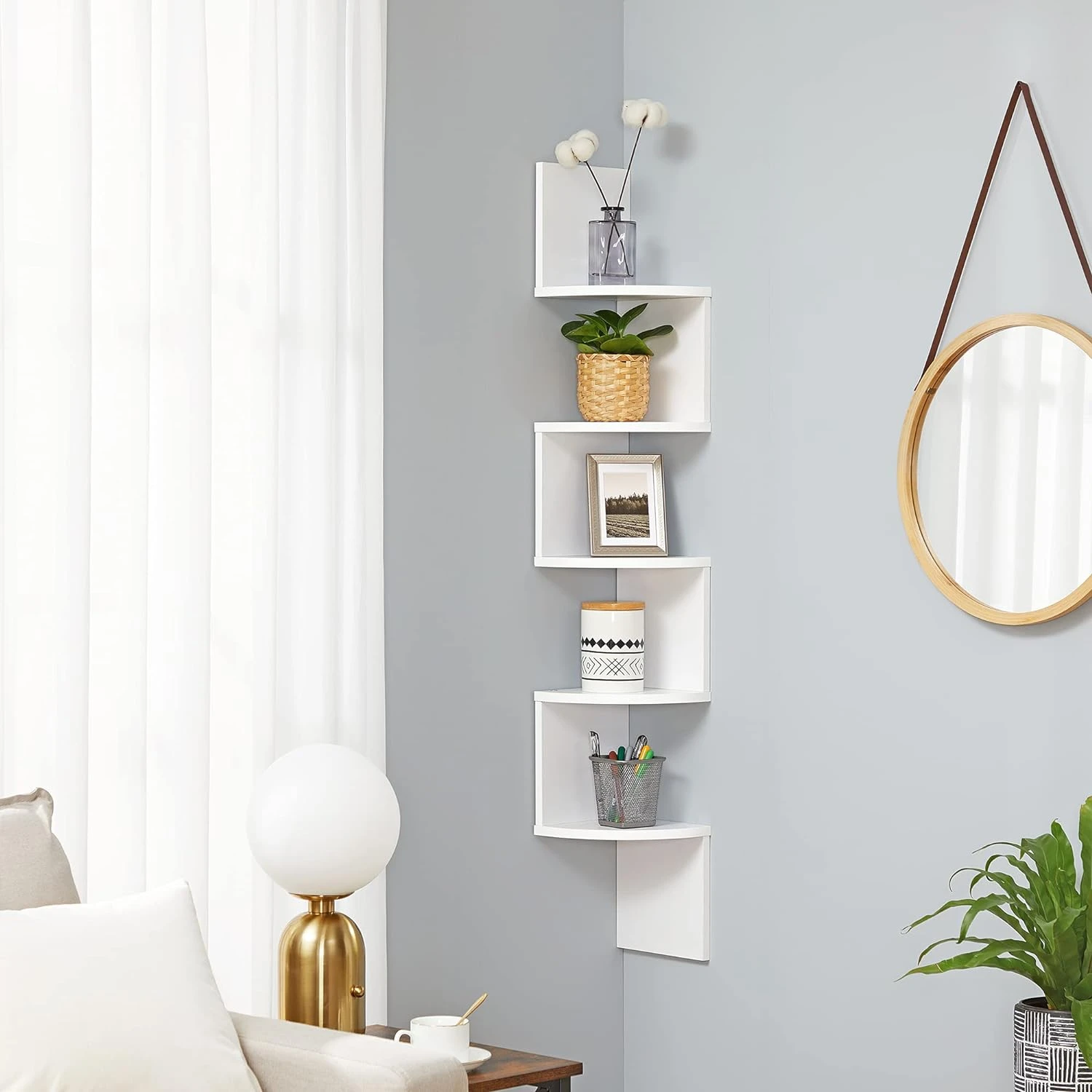 Regał Narożny Półka - LBC72WT sprawdzi się w salonie, sypialni, biurze lub przedpokoju. To praktyczny mebel, który ułatwia organizację i jednocześnie buduje charakter wnętrza.