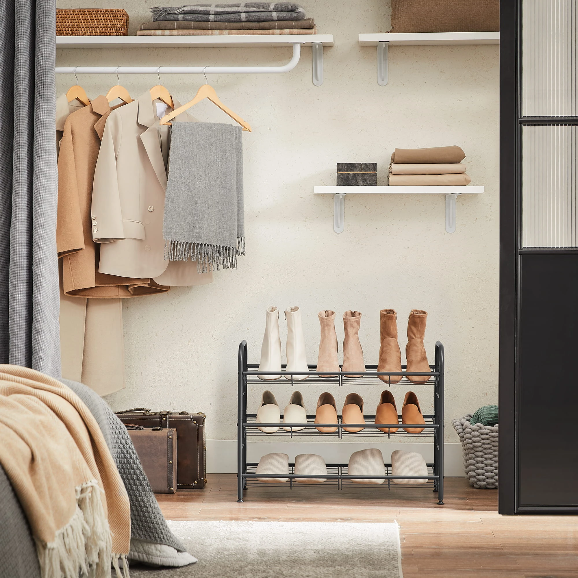Regał na Buty - LMR066B01 sprawdzi się w salonie, sypialni, biurze lub przedpokoju. To praktyczny mebel, który ułatwia organizację i jednocześnie buduje charakter wnętrza.