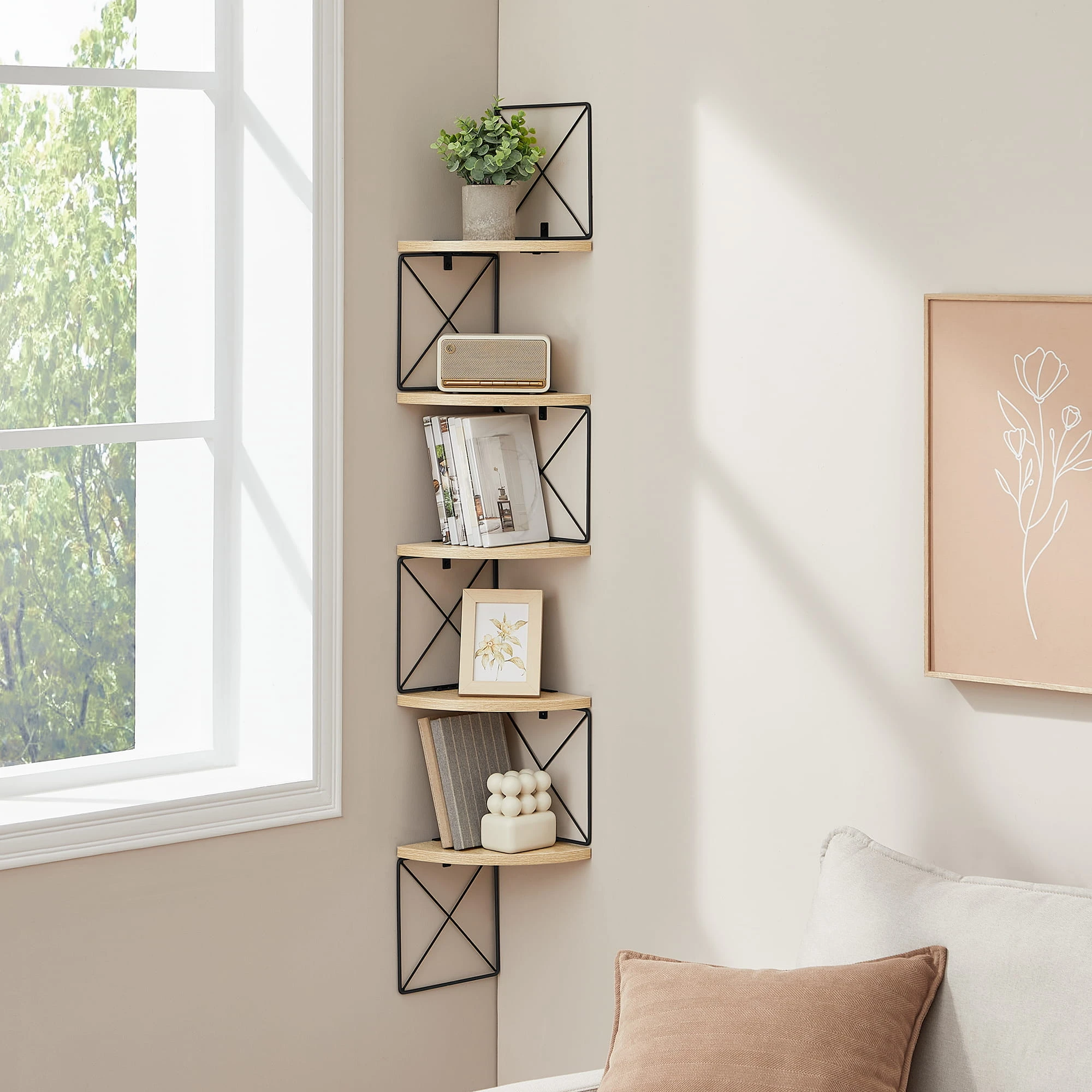 Regał - sonoma - LLS851B11 sprawdzi się w salonie, sypialni, biurze lub przedpokoju. To praktyczny mebel, który ułatwia organizację i jednocześnie buduje charakter wnętrza.