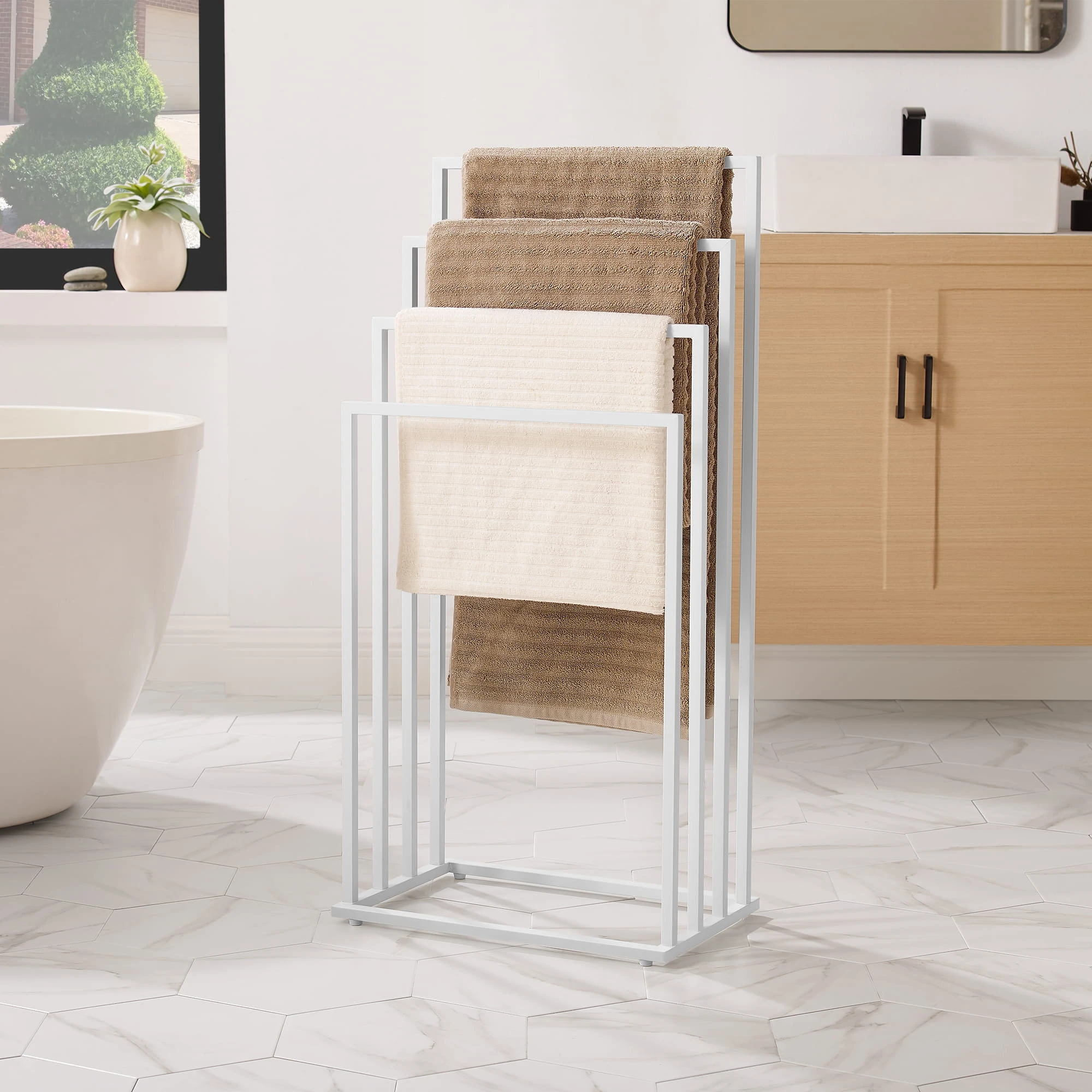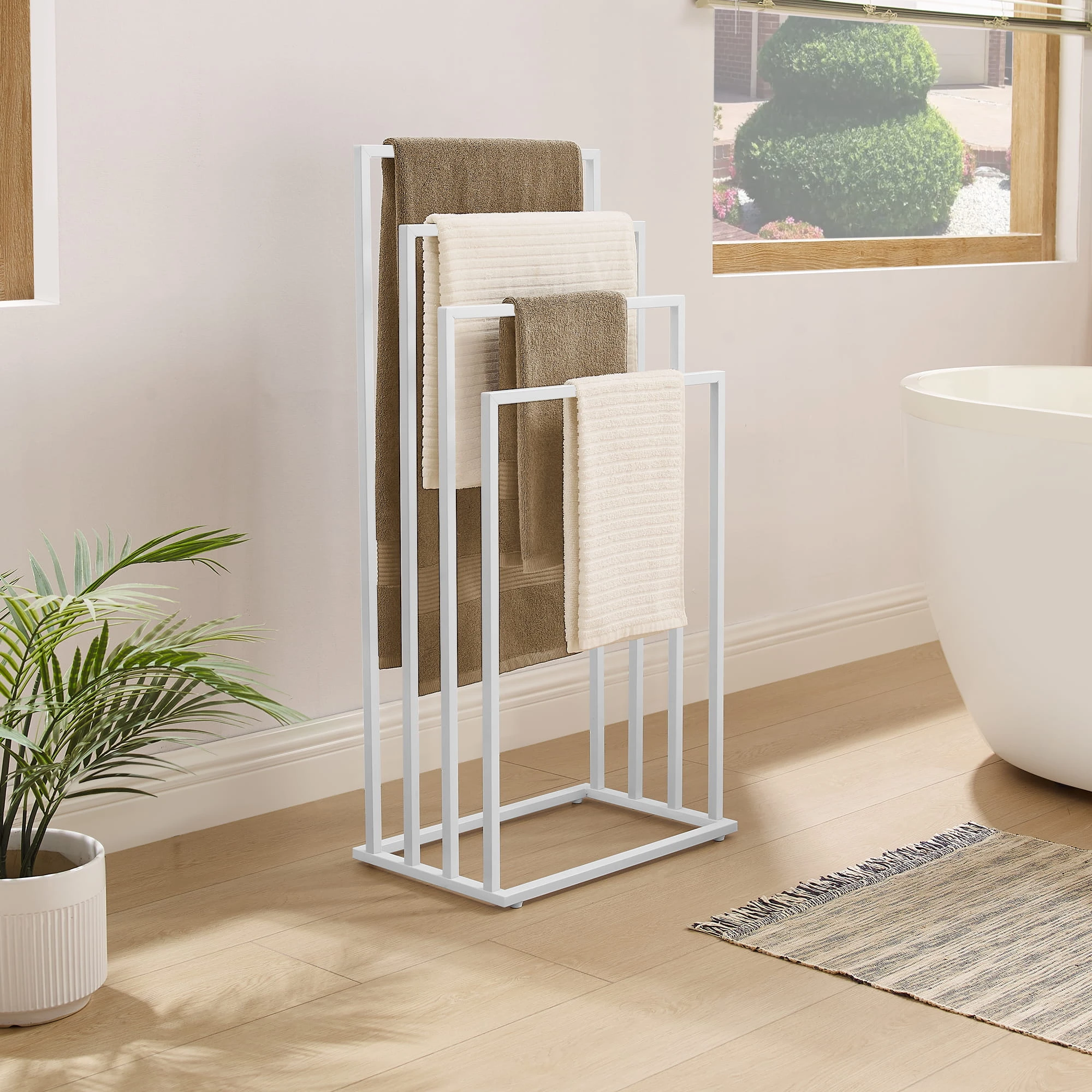 Stojak na ręczniki 4 szczeble - biały to propozycja dla osób, które szukają praktycznego wyposażenia o uniwersalnym zastosowaniu i dopracowanym wyglądzie.