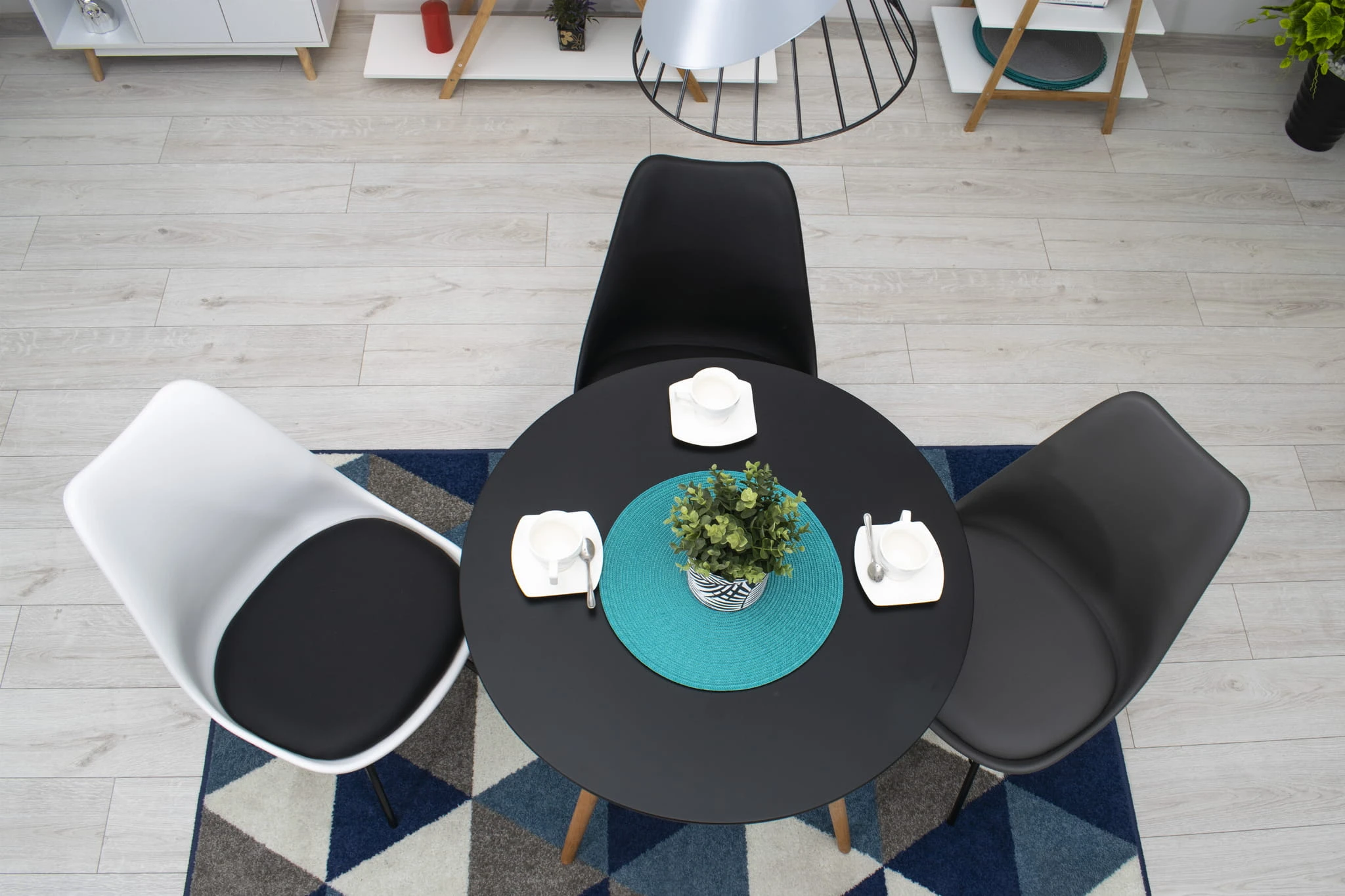 Stół TODI Okrągły 80cm - czarny dobrze odnajdzie się zarówno w codziennym użytkowaniu, jak i podczas spotkań z rodziną lub gośćmi. To model, który pomaga stworzyć wygodną i reprezentacyjną przestrzeń przy stole.