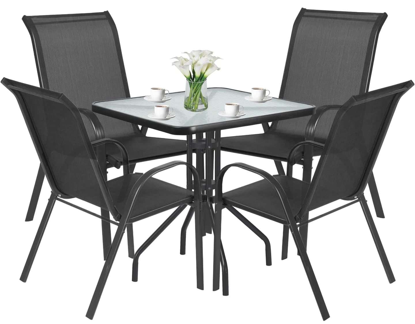 Stół kwadrat ISLAND 70cm + 4x Krzesło SOFIA ciemny szary