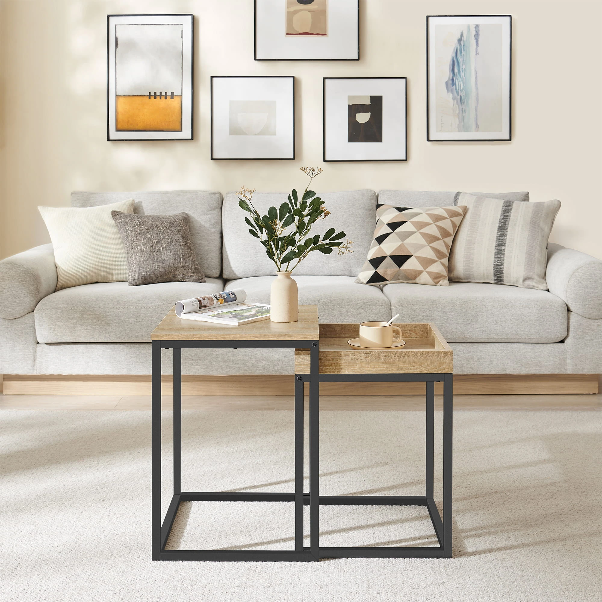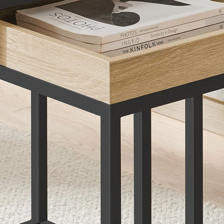 Stolik Kawowy 2 - częściowy - sonoma - LNT02N11 sprawdzi się jako stolik kawowy, pomocniczy lub dekoracyjny. To mebel, który łączy lekką formę z codzienną funkcjonalnością.