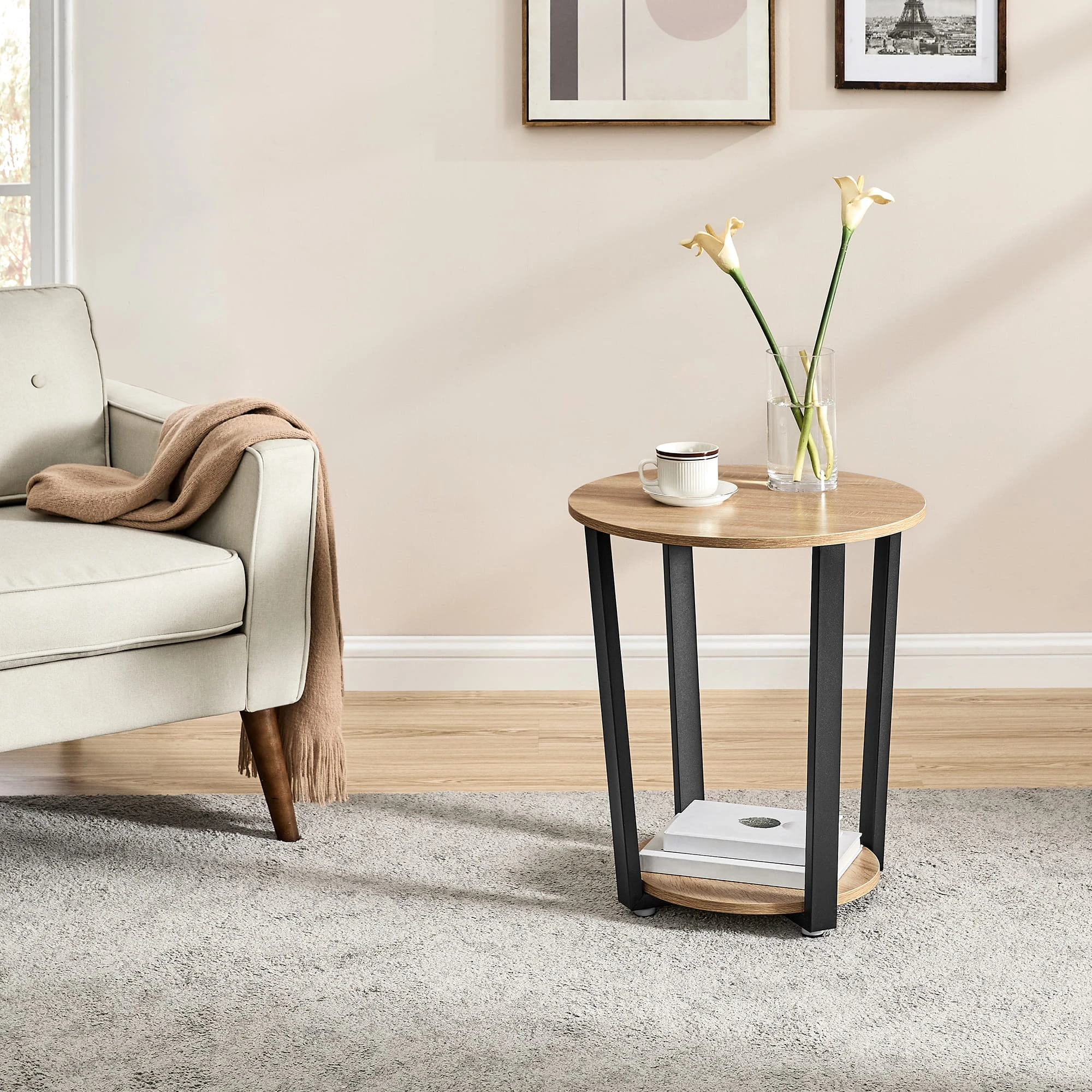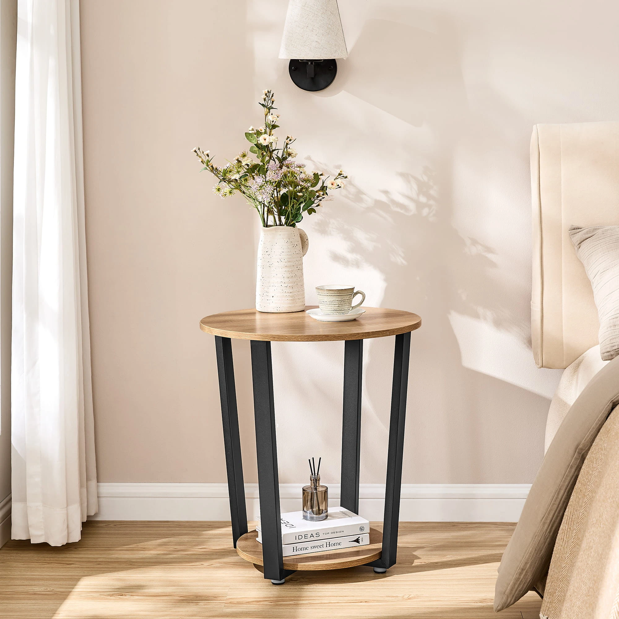 Stolik Okrągły - sonoma - LET057B11 sprawdzi się jako stolik kawowy, pomocniczy lub dekoracyjny. To mebel, który łączy lekką formę z codzienną funkcjonalnością.