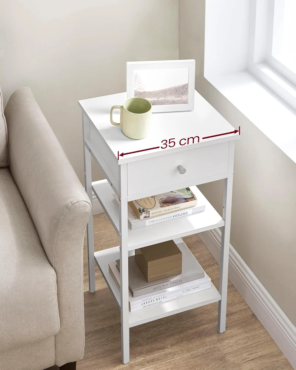 - wygodne miejsce na filiżankę, książkę, piloty lub dekoracje
