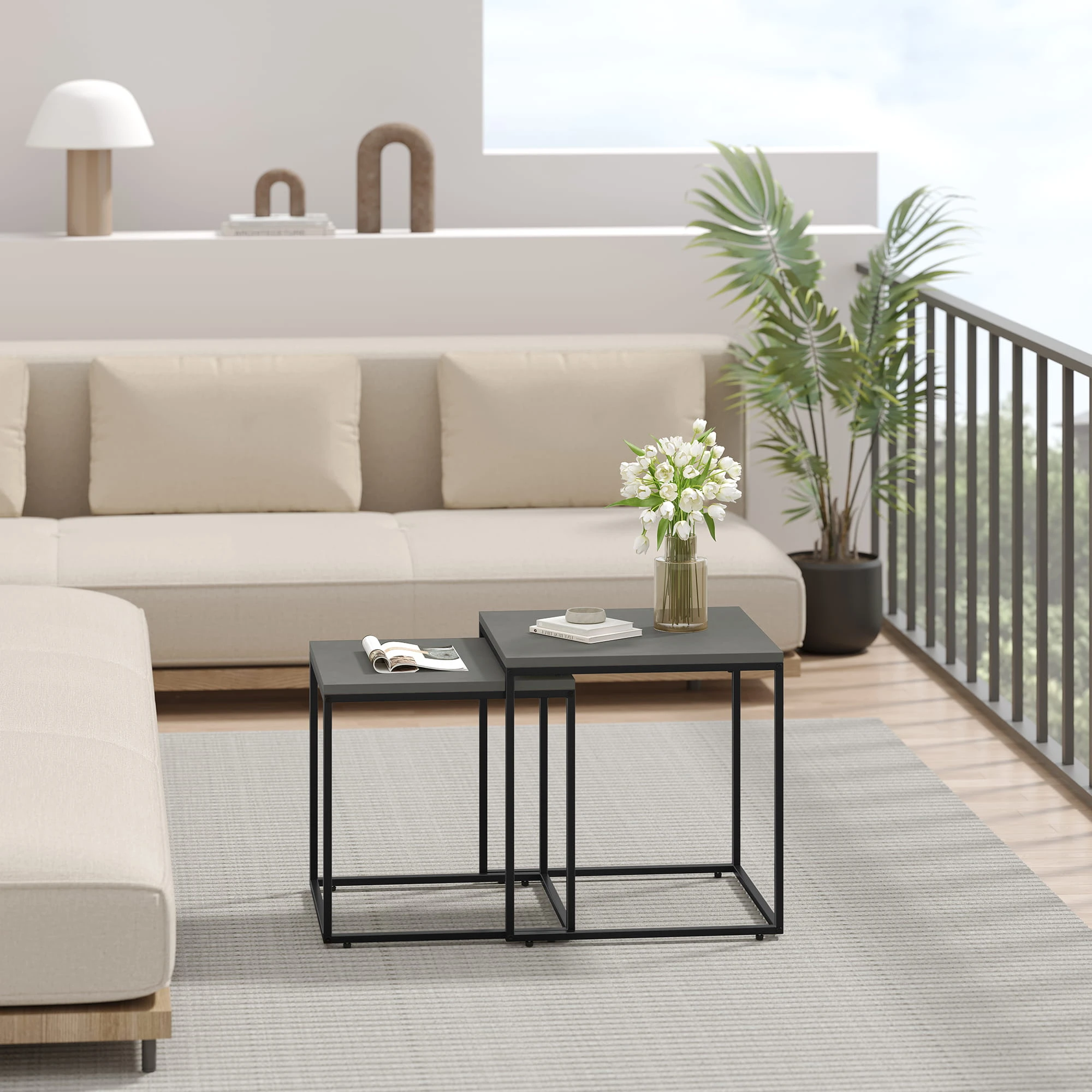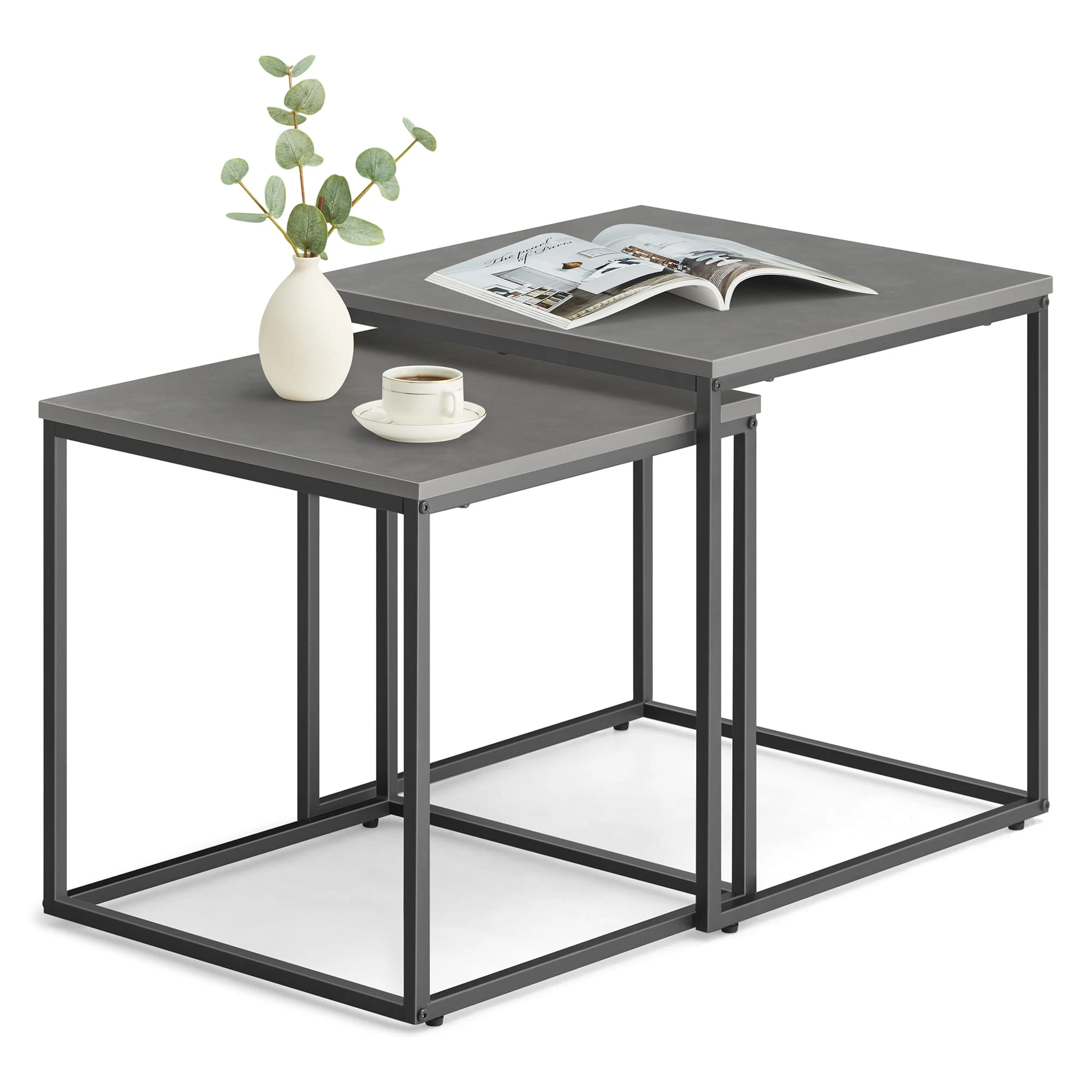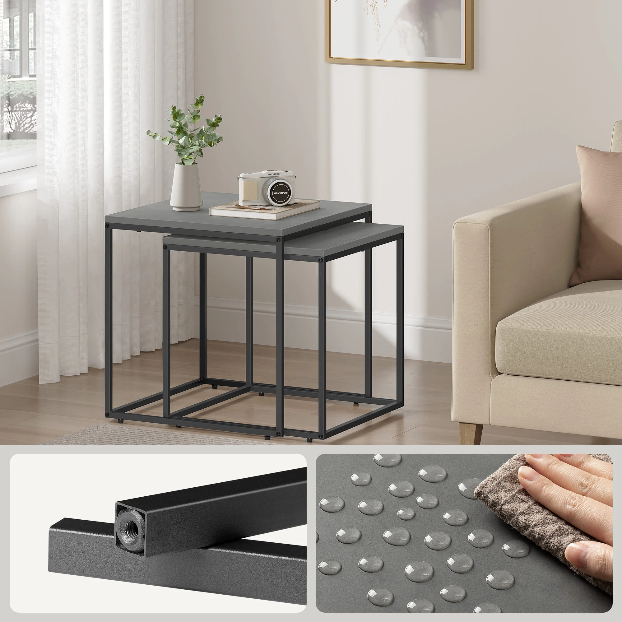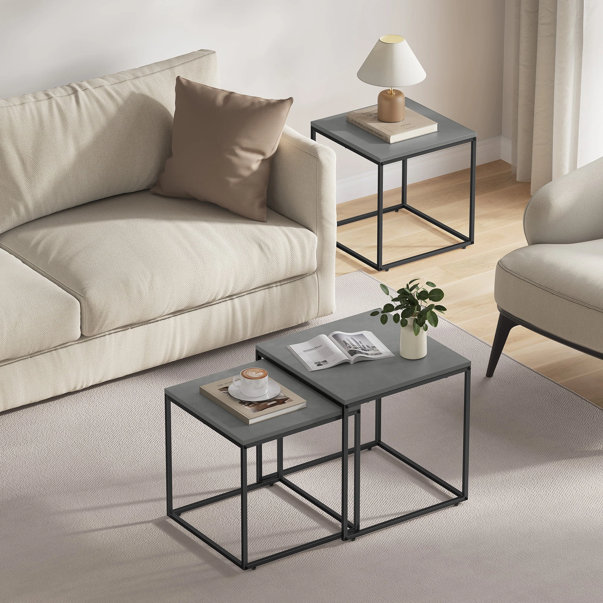 Stolik kawowy kwadrat 2szt - beton nogi czarne sprawdzi się jako stolik kawowy, pomocniczy lub dekoracyjny. To mebel, który łączy lekką formę z codzienną funkcjonalnością.