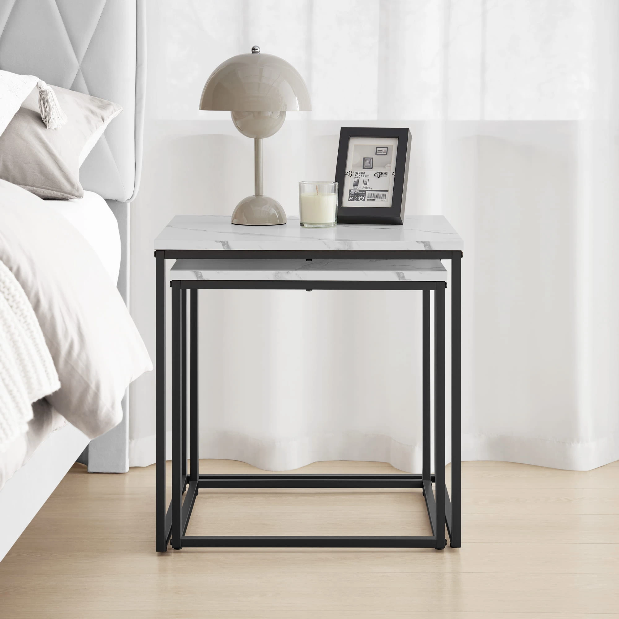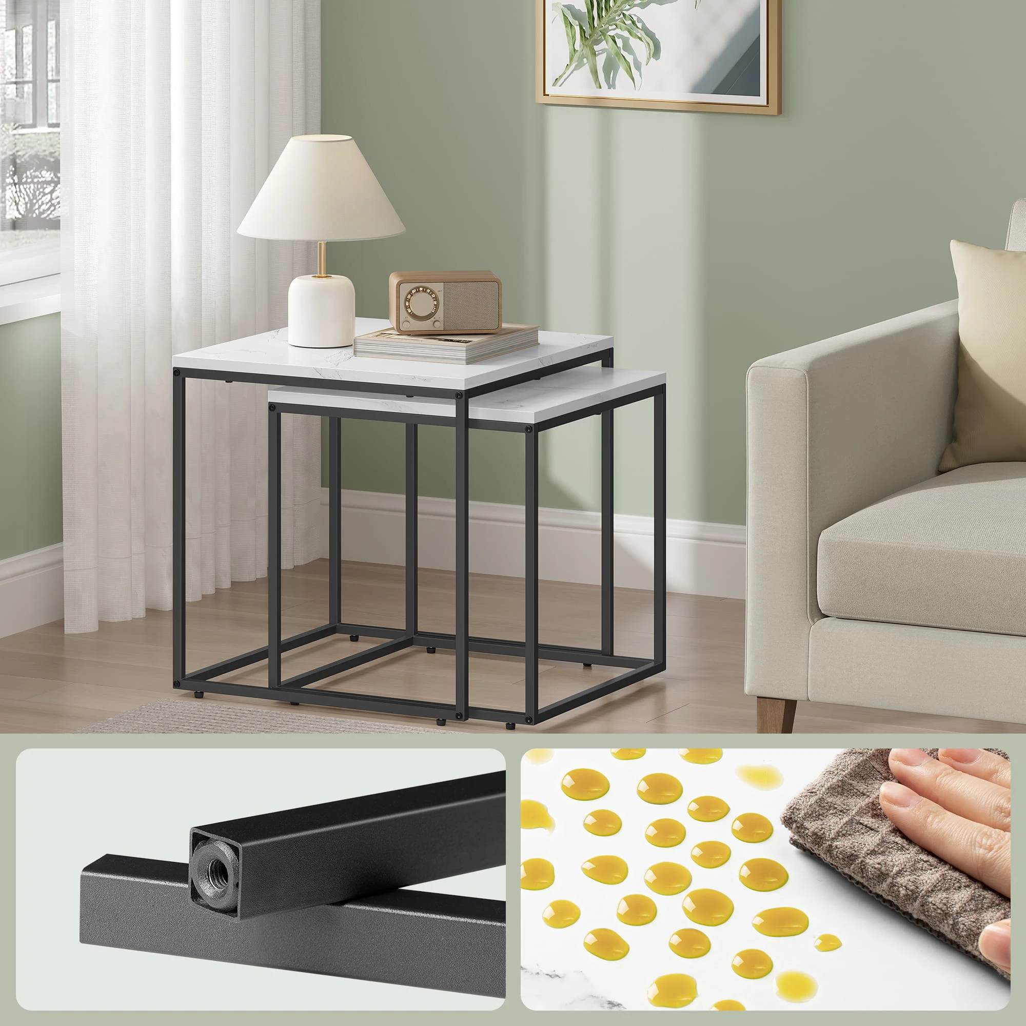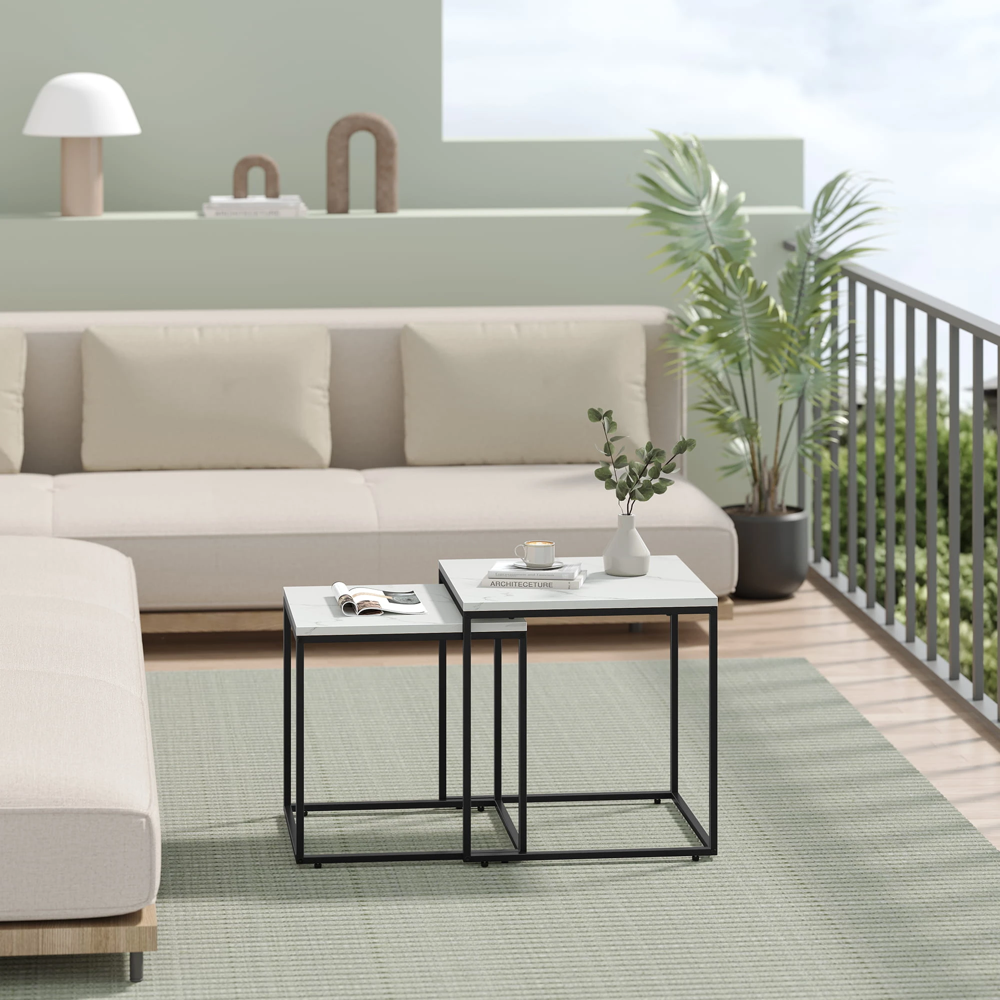 Stolik kawowy kwadrat 2szt - marmur nogi czarne