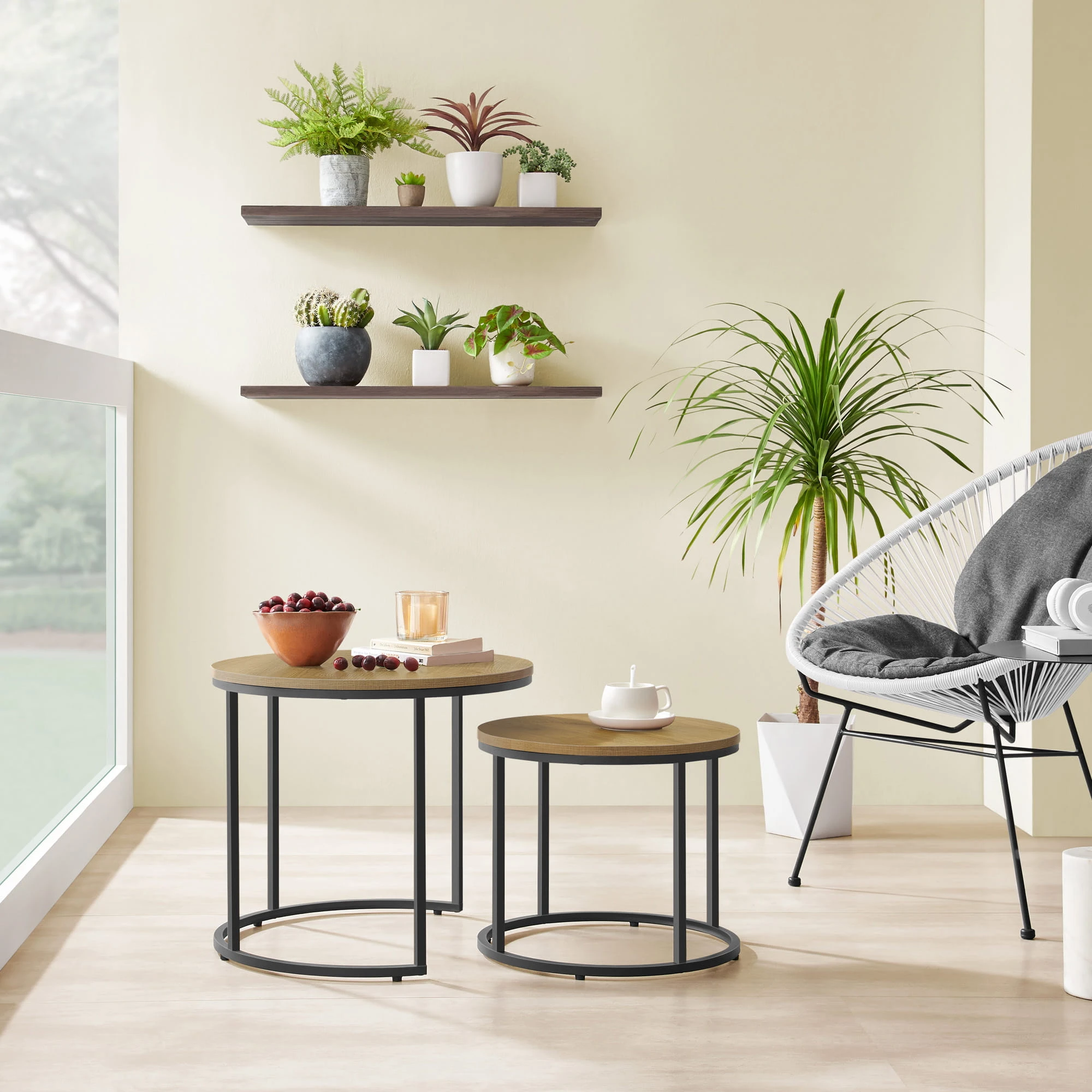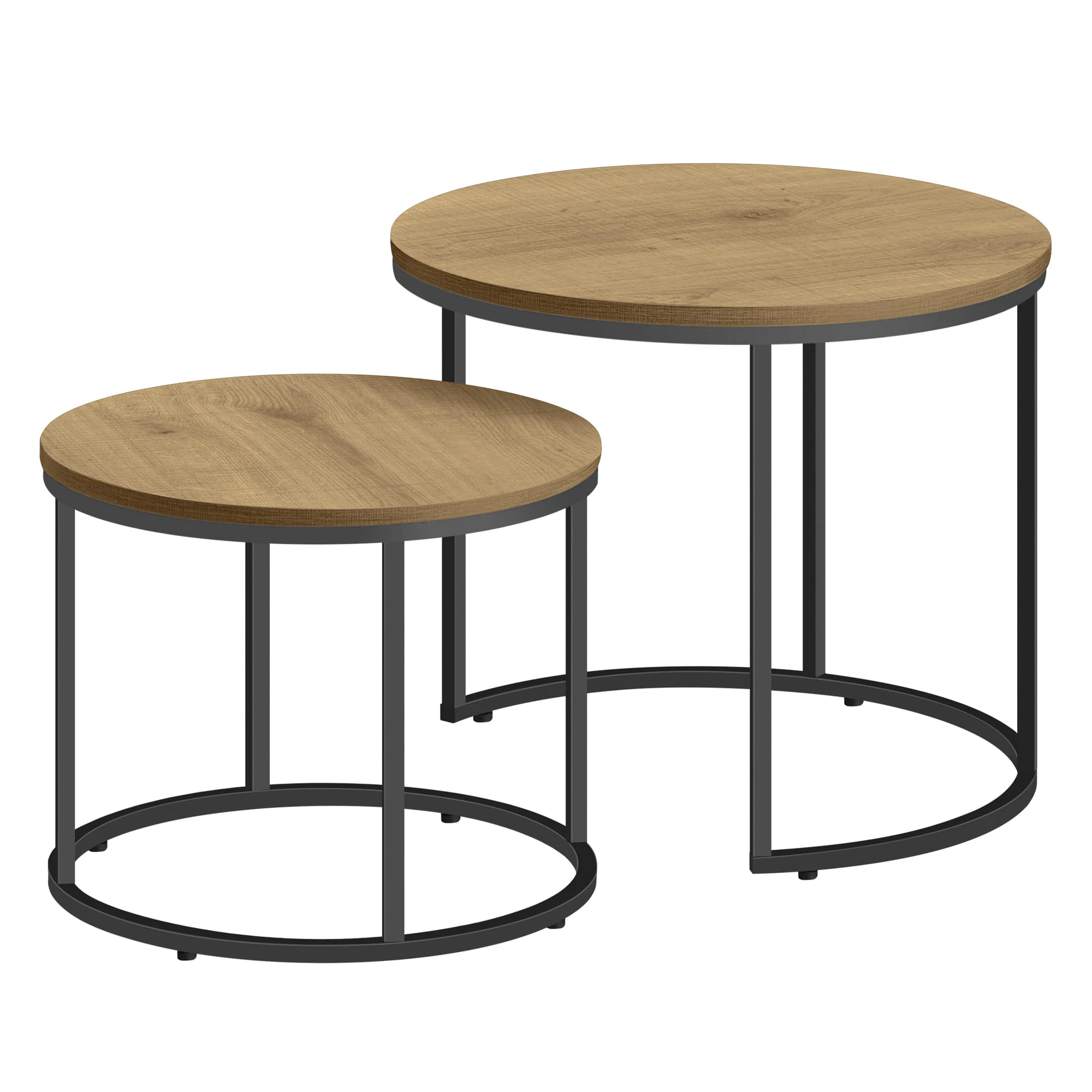 Stolik kawowy okrągły 2szt - dąb nogi czarne