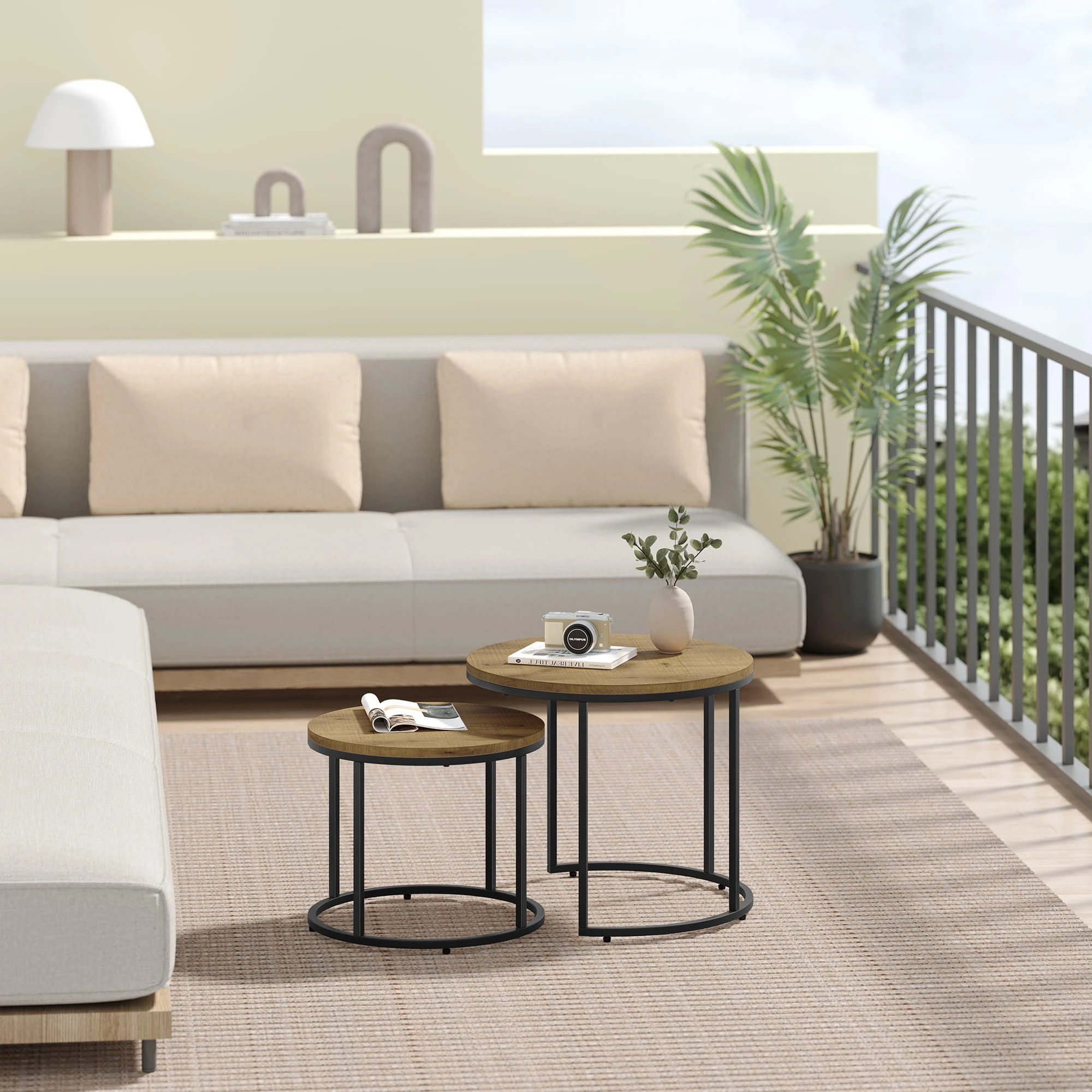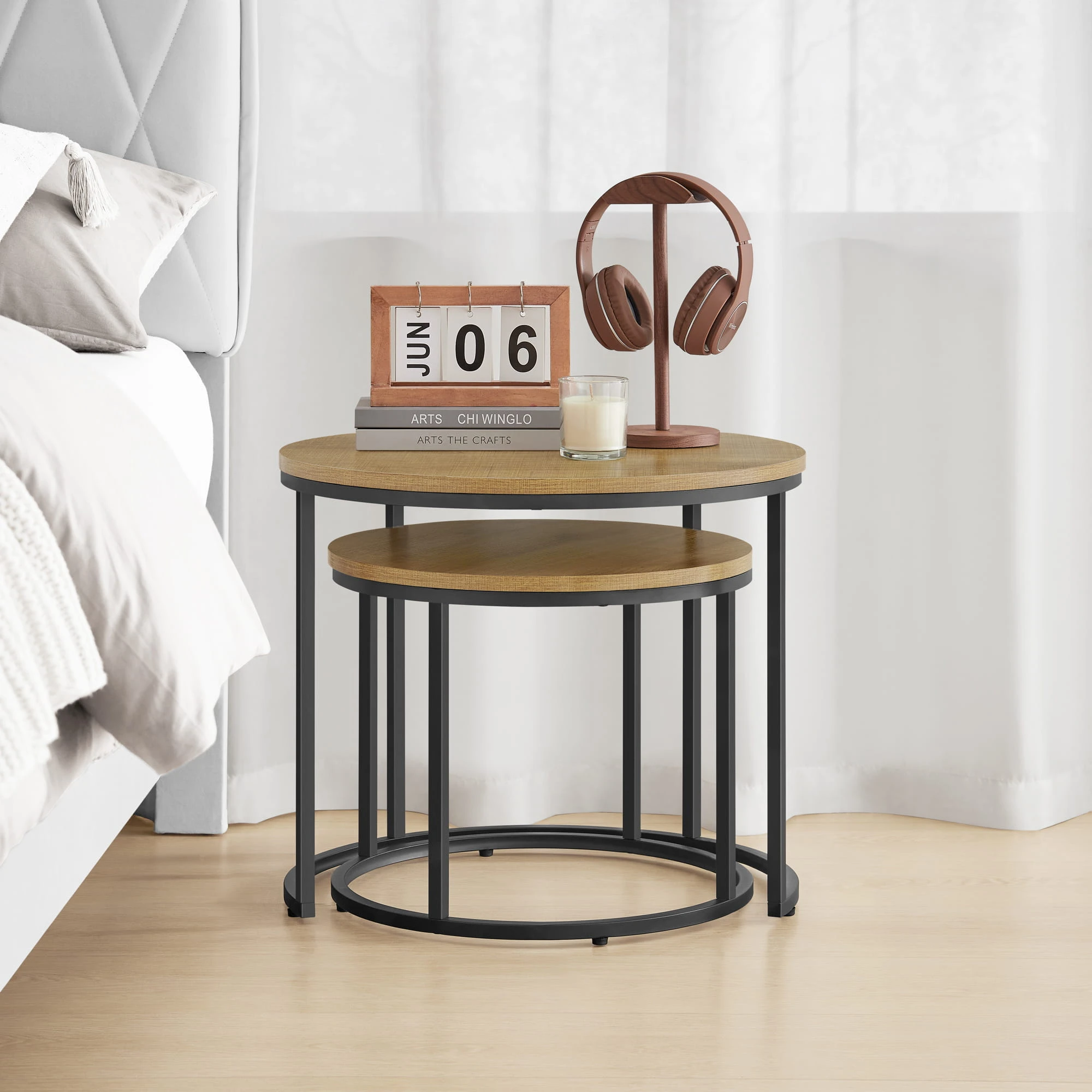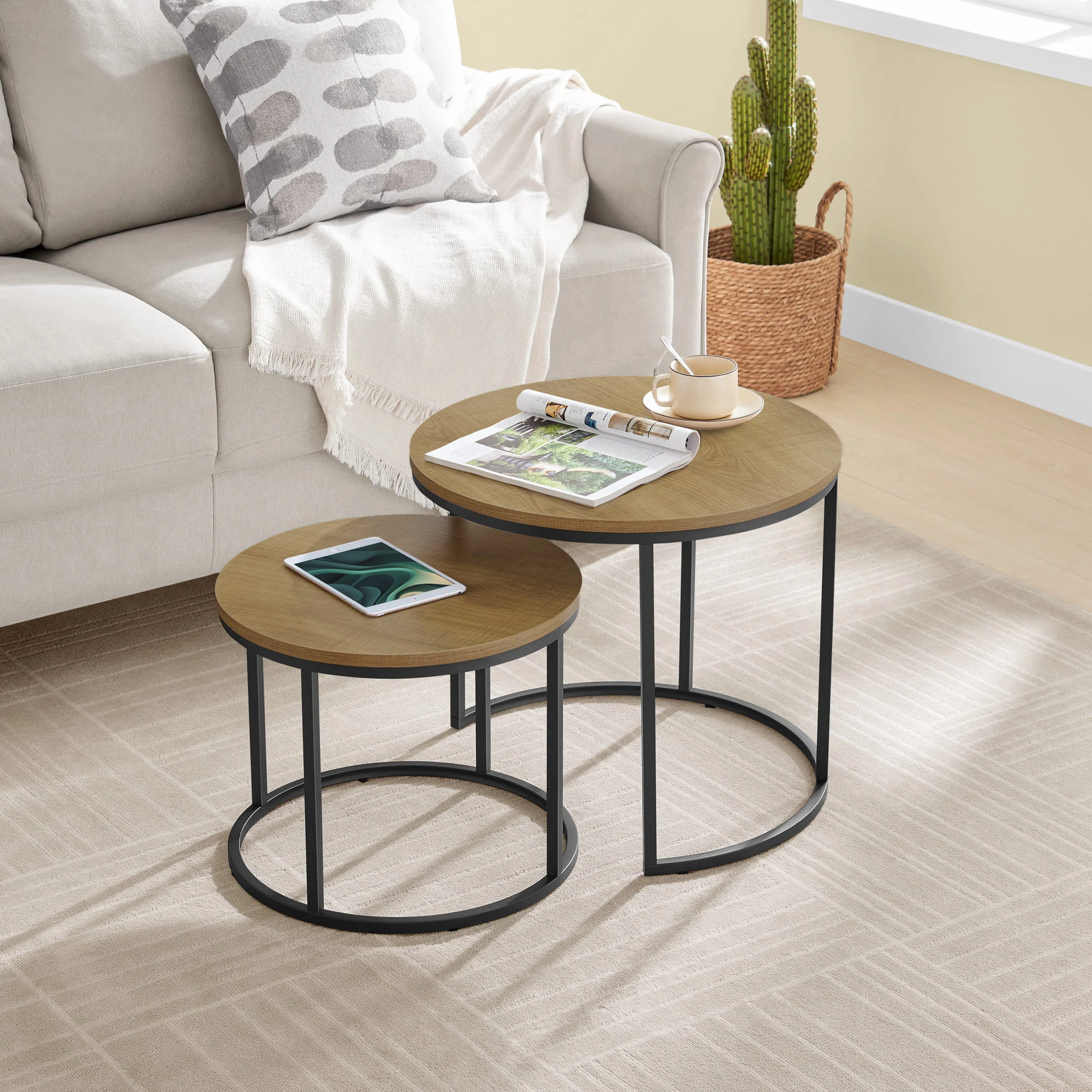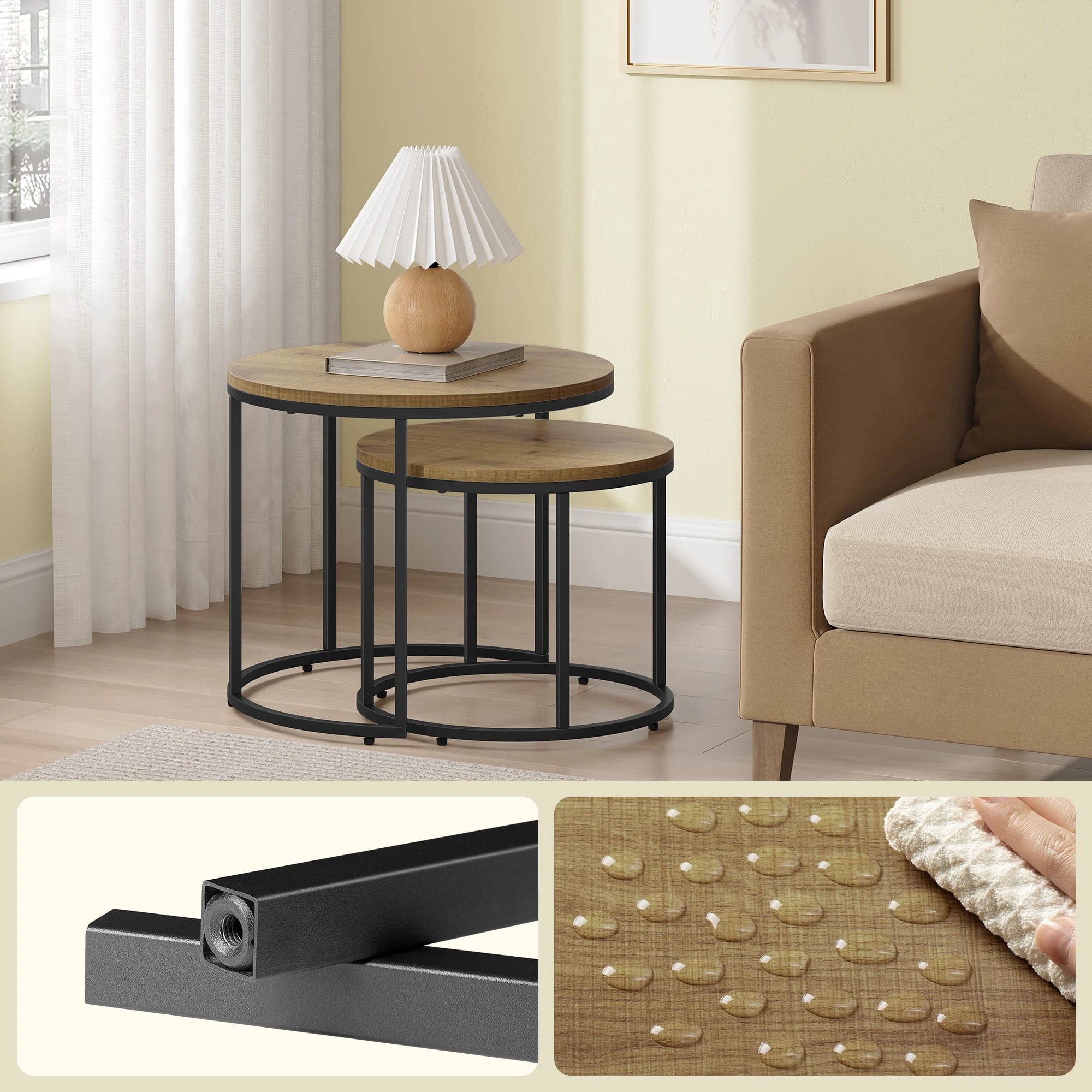 Stolik kawowy okrągły 2szt - dąb nogi czarne sprawdzi się jako stolik kawowy, pomocniczy lub dekoracyjny. To mebel, który łączy lekką formę z codzienną funkcjonalnością.