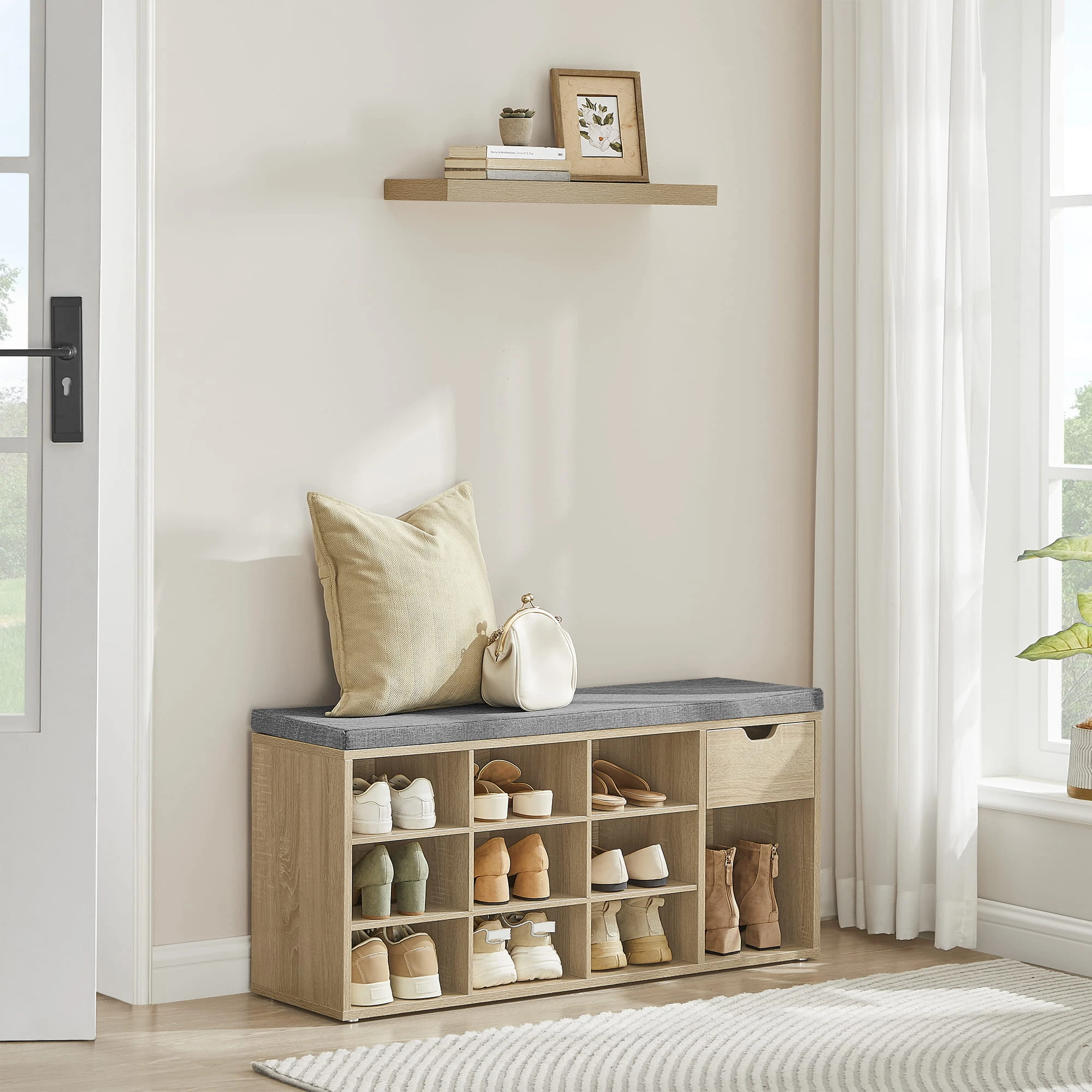 Szafka na Buty z Siedziskiem - sonoma - LHS024W11 sprawdzi się tam, gdzie liczy się wygoda organizacji oraz spójny wygląd wyposażenia. To rozwiązanie do nowoczesnych wnętrz, w których ważny jest porządek i funkcjonalność.