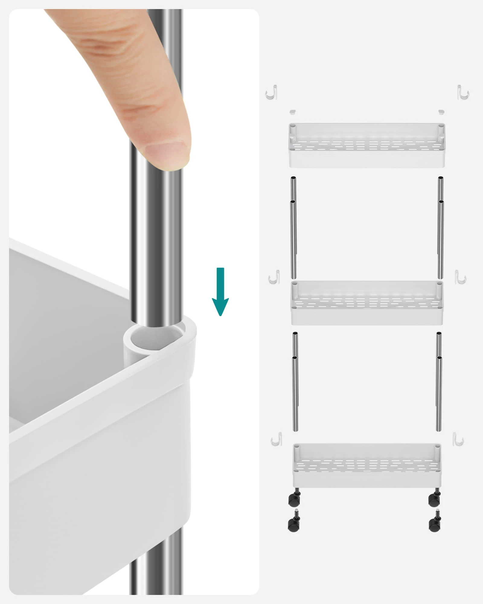 Szafka na kółkach 3 półki biała - KSC007W01 sprawdzi się tam, gdzie liczy się wygoda organizacji oraz spójny wygląd wyposażenia. To rozwiązanie do nowoczesnych wnętrz, w których ważny jest porządek i funkcjonalność.