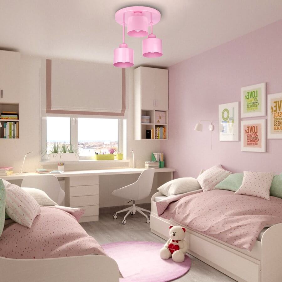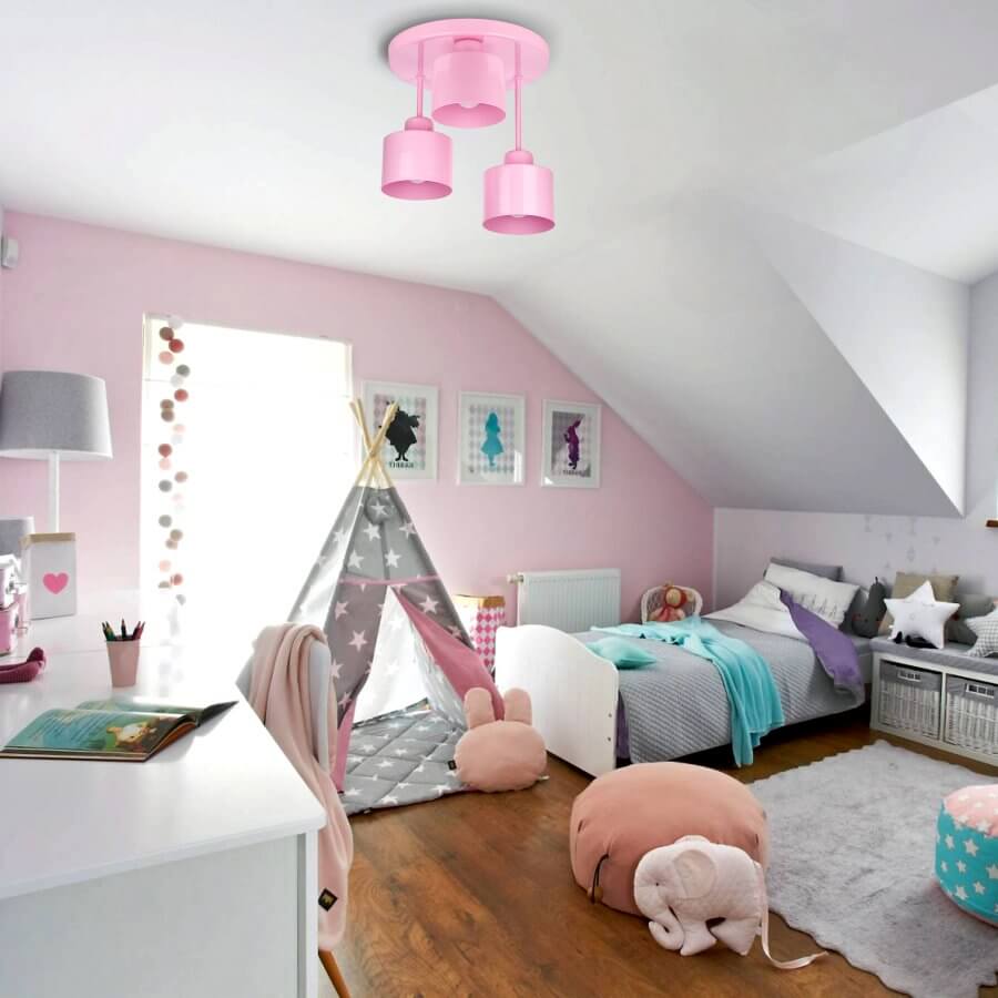 WULKAN 3 Lampa sufitowa - Dziecięca, metalowa, różowa 3xE27 – nowoczesna lampa do salonu i jadalni sprawdzi się jako element oświetlenia głównego lub uzupełniającego, w zależności od układu pomieszczenia. To propozycja do wnętrz, w których liczy się zarówno światło, jak i design.
