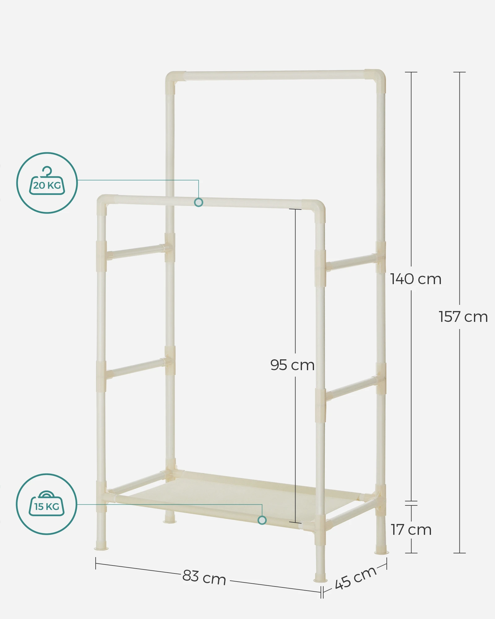 Wieszak Stojak na Ubrania - RDR01WT sprawdzi się w przedpokoju, garderobie, biurze lub poczekalni. Ułatwia organizację i pozwala utrzymać porządek tam, gdzie liczy się szybki dostęp do okryć wierzchnich.