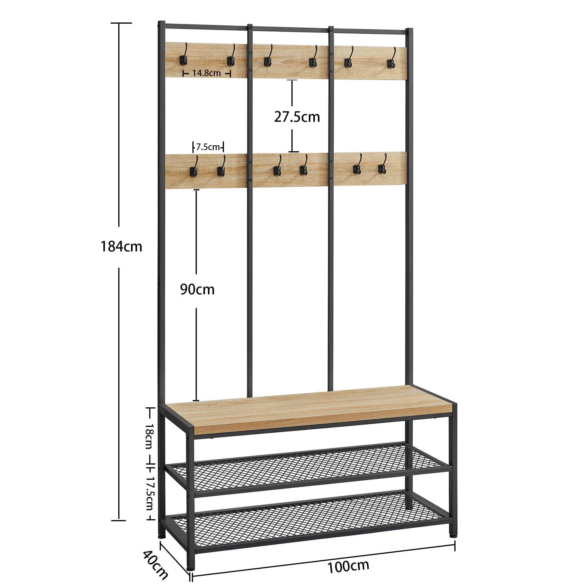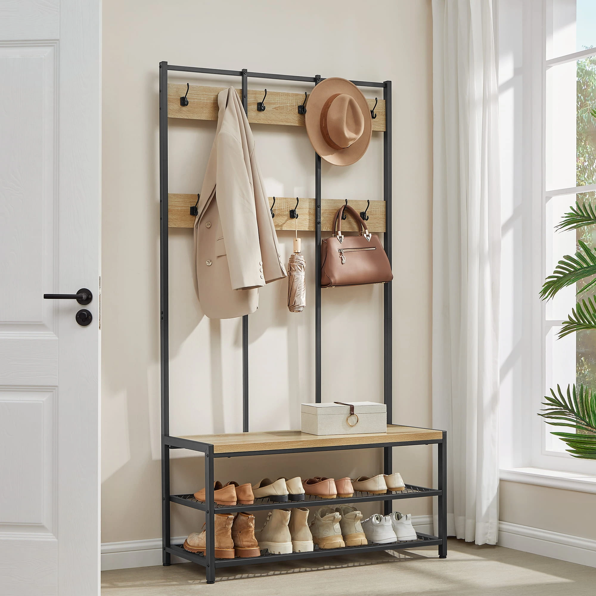 Wieszak Stojak na Ubrania - sonoma - HSR086B11 sprawdzi się w przedpokoju, garderobie, biurze lub poczekalni. Ułatwia organizację i pozwala utrzymać porządek tam, gdzie liczy się szybki dostęp do okryć wierzchnich.