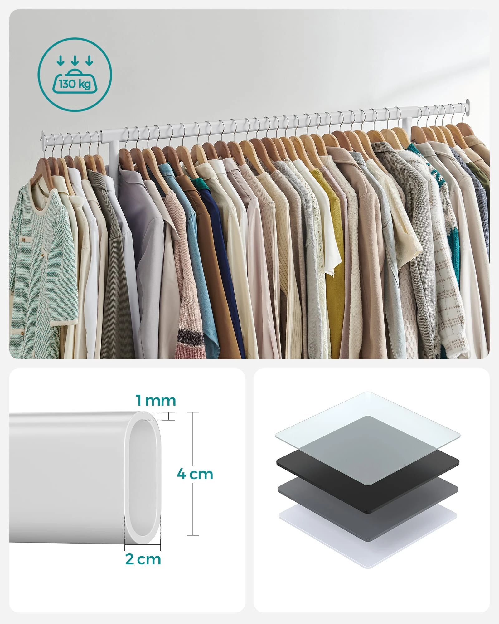 Wieszak na Ubrania na Kółkach - HSR011W01V1 sprawdzi się w przedpokoju, garderobie, biurze lub poczekalni. Ułatwia organizację i pozwala utrzymać porządek tam, gdzie liczy się szybki dostęp do okryć wierzchnich.