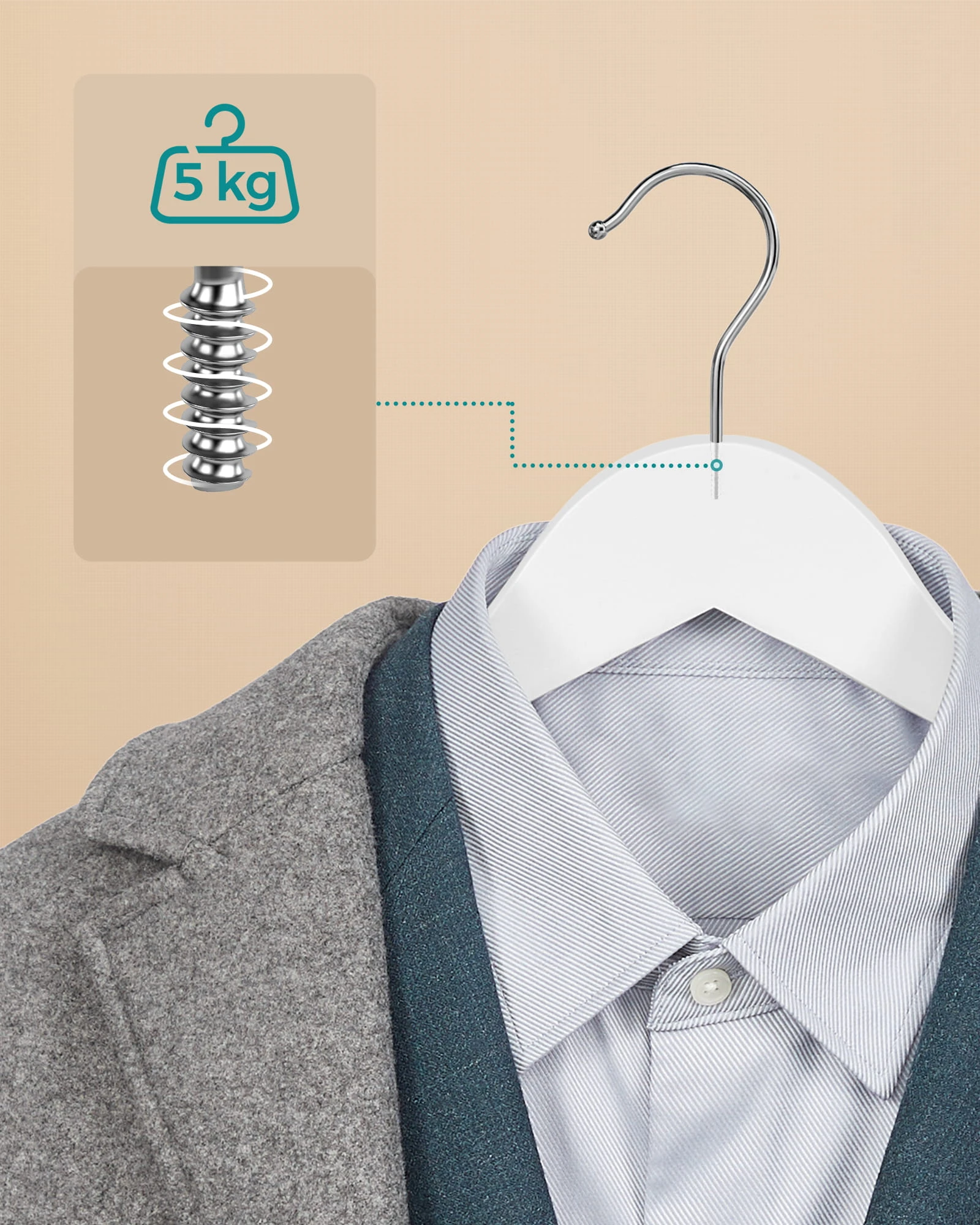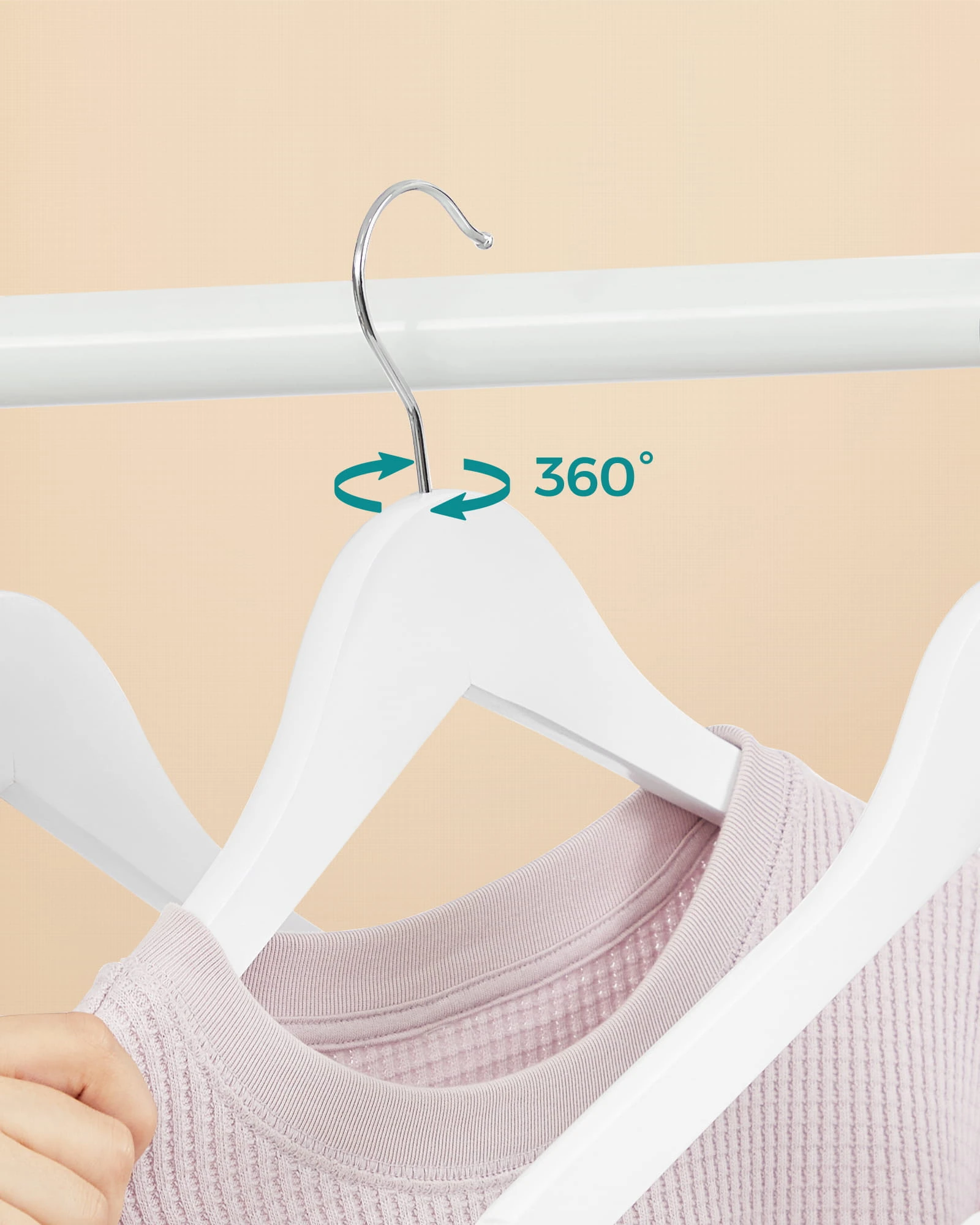 Wieszaki drewno białe 10szt - CRW03W10 sprawdzi się w przedpokoju, garderobie, biurze lub poczekalni. Ułatwia organizację i pozwala utrzymać porządek tam, gdzie liczy się szybki dostęp do okryć wierzchnich.