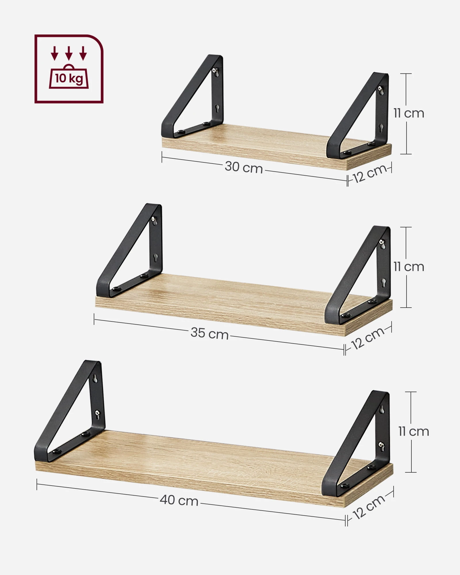 Zestaw 3 Półek Wiszących - sonoma - LWS033B11 to propozycja dla osób, które szukają praktycznego wyposażenia o uniwersalnym zastosowaniu i dopracowanym wyglądzie.