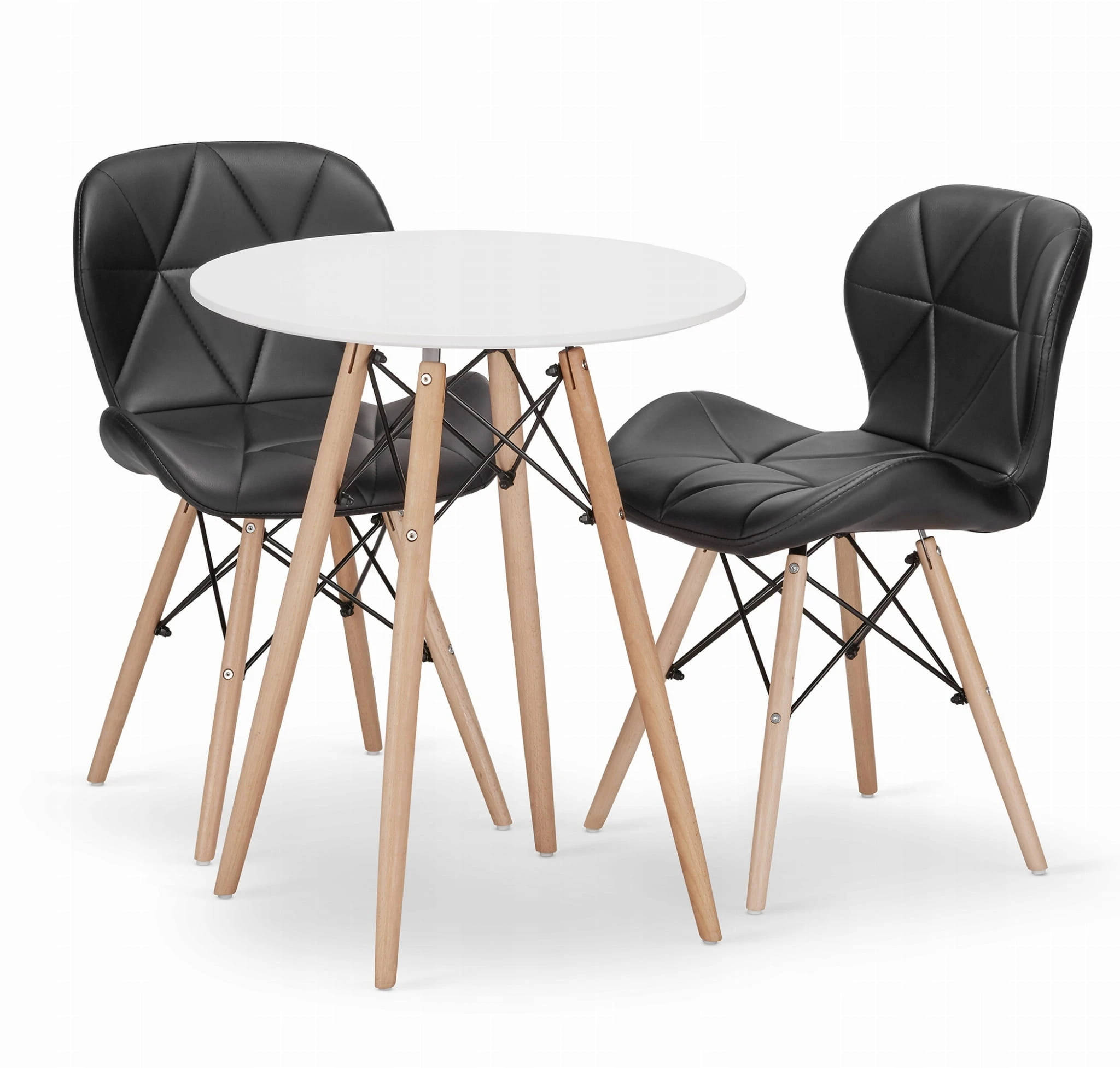 Zestaw stół okrągły TODI 60 biały + 2 krzesła LAGO czarne