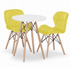 Zestaw stół okrągły TODI 60 biały + 2 krzesła LAGO żółte