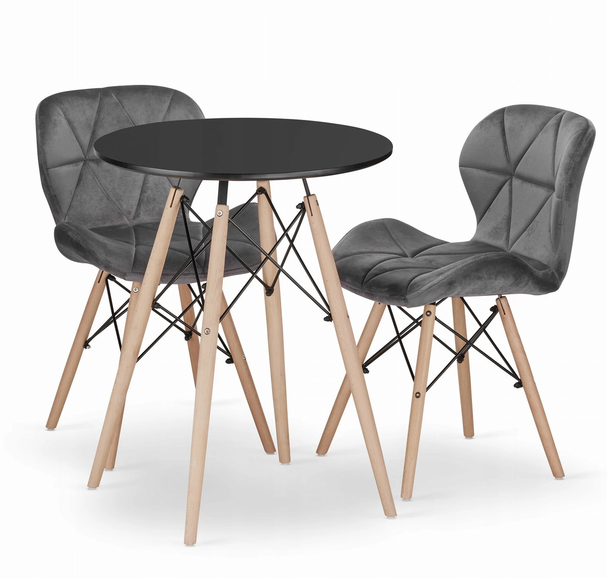 Zestaw stół okrągły TODI 60 czarny + 2 krzesła LAGO szare