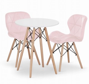 Zestaw stół okrągły TODI 60cm biały + 2 krzesła LAGO różowe