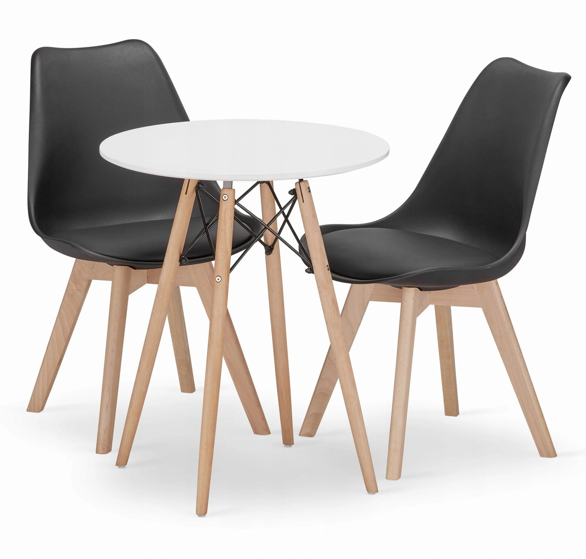 Zestaw stół okrągły TODI 60cm biały + 2 krzesła MARK czarne dobrze odnajdzie się zarówno w codziennym użytkowaniu, jak i podczas spotkań z rodziną lub gośćmi. To model, który pomaga stworzyć wygodną i reprezentacyjną przestrzeń przy stole.
