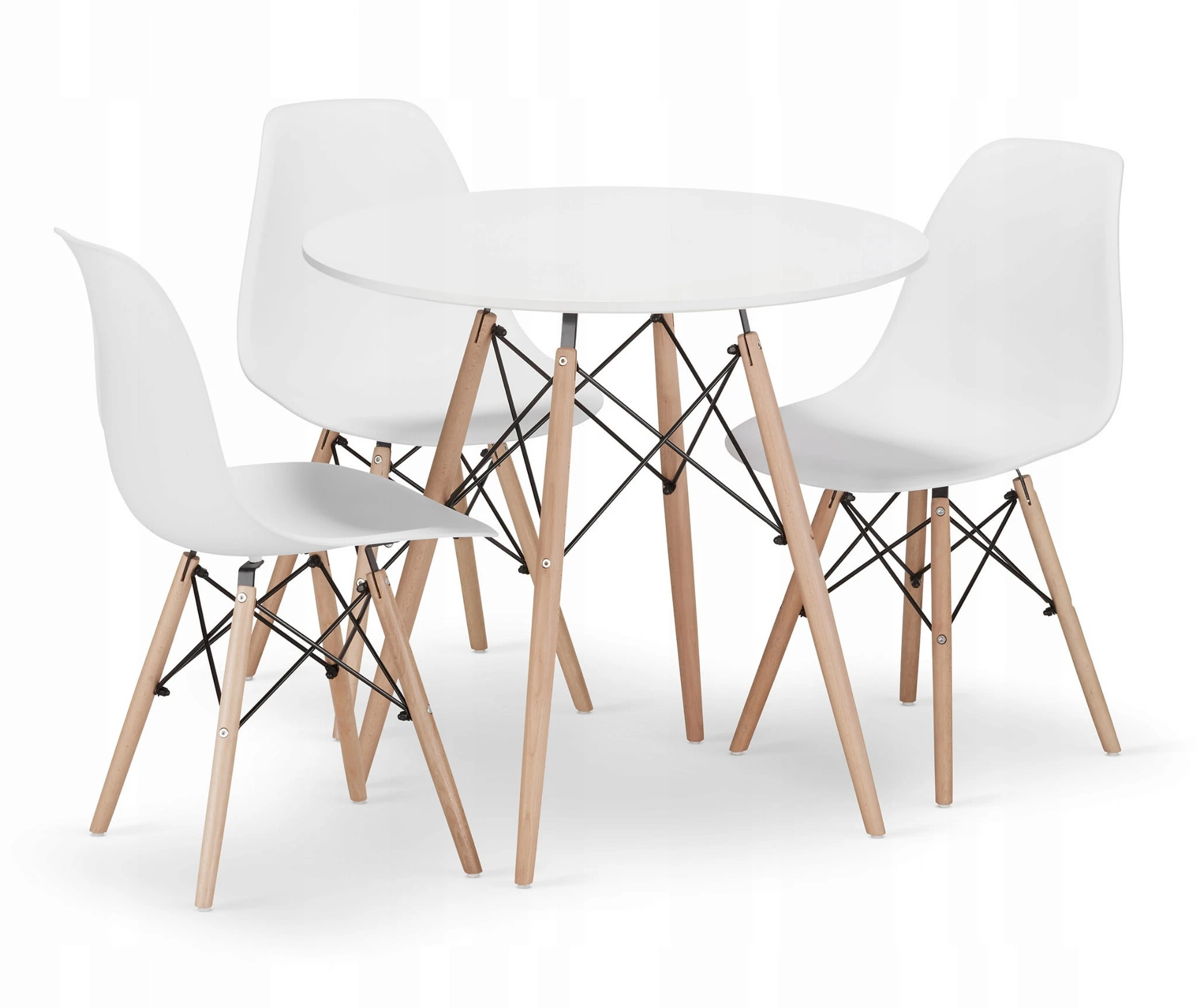Zestaw stół okrągły TODI 80 biały + 3 krzesła OSAKA białe