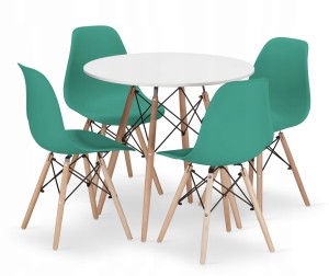 Zestaw stół okrągły TODI 80 biały + 4 krzesła OSAKA zielone dobrze odnajdzie się zarówno w codziennym użytkowaniu, jak i podczas spotkań z rodziną lub gośćmi. To model, który pomaga stworzyć wygodną i reprezentacyjną przestrzeń przy stole.