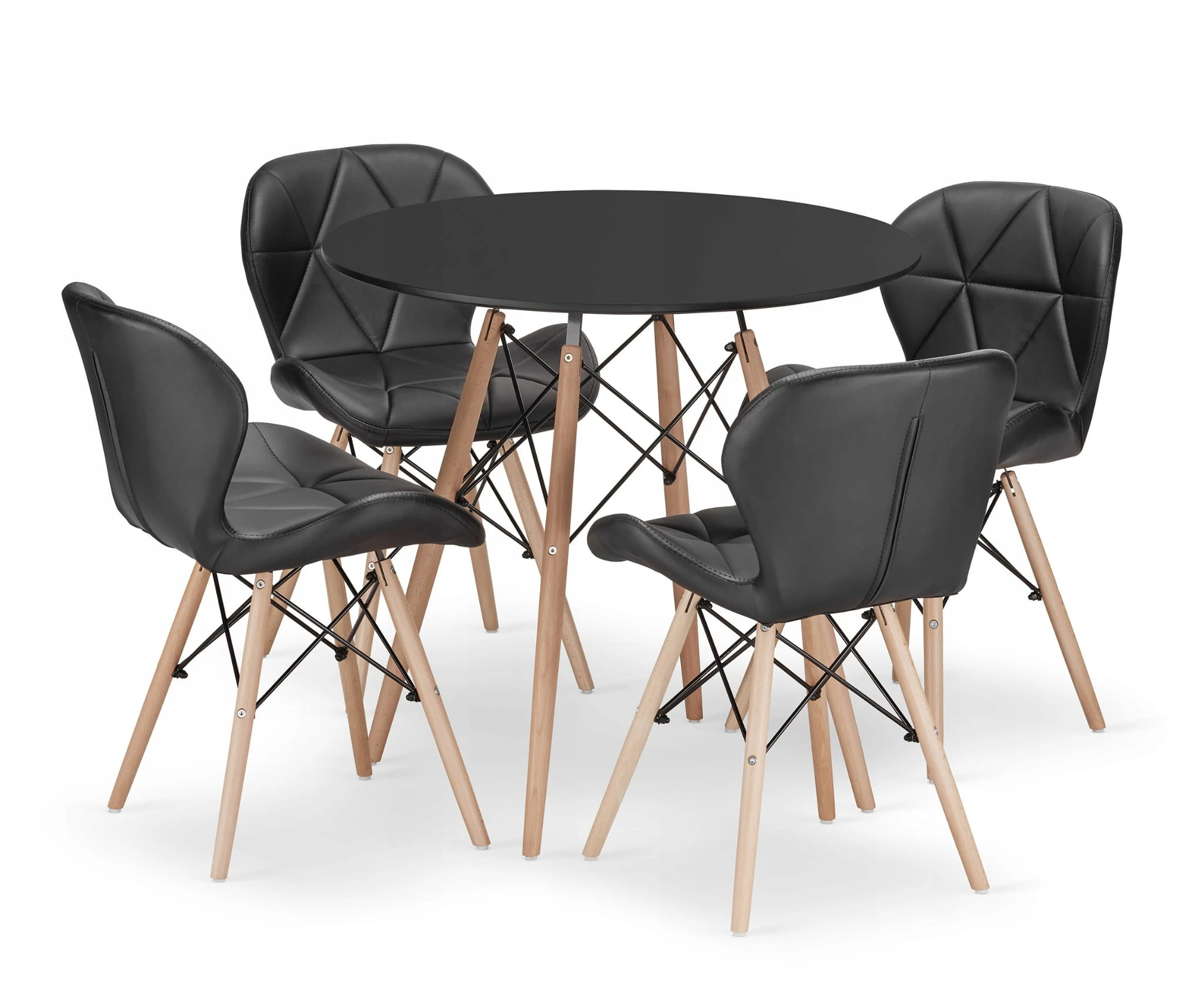Zestaw stół okrągły TODI 80 czarny + 4 krzesła LAGO czarne
