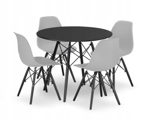 Zestaw stół okrągły TODI 80 czarny + 4 krzesła OSAKA szare