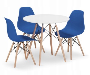 Zestaw stół okrągły TODI 80cm biały + 3 krzesła OSAKA niebieskie
