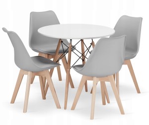 Zestaw stół okrągły TODI 80cm biały + 4 krzesła MARK szare dobrze odnajdzie się zarówno w codziennym użytkowaniu, jak i podczas spotkań z rodziną lub gośćmi. To model, który pomaga stworzyć wygodną i reprezentacyjną przestrzeń przy stole.
