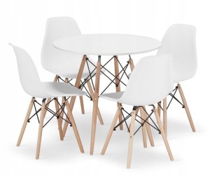 Zestaw stół okrągły TODI 80cm biały + 4 krzesła OSAKA białe