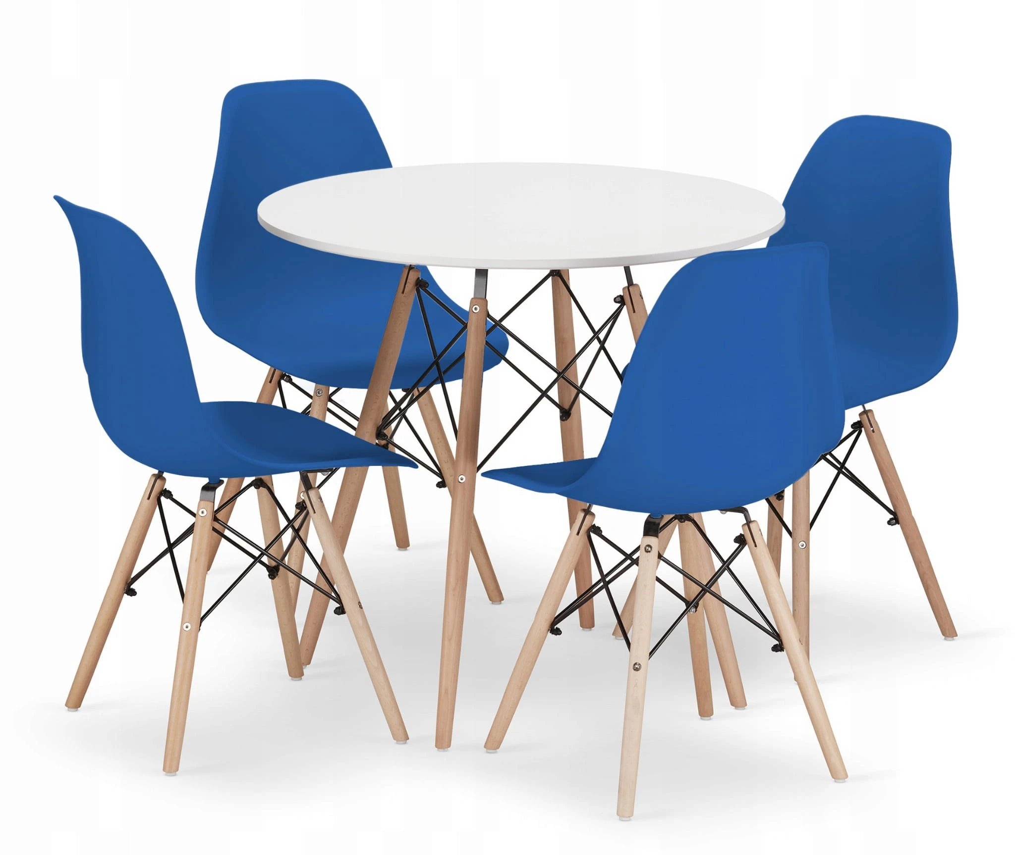 Zestaw stół okrągły TODI 80cm biały + 4 krzesła OSAKA niebieskie