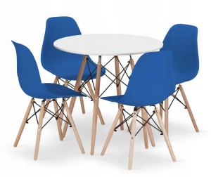 Zestaw stół okrągły TODI 80cm biały + 4 krzesła OSAKA niebieskie dobrze odnajdzie się zarówno w codziennym użytkowaniu, jak i podczas spotkań z rodziną lub gośćmi. To model, który pomaga stworzyć wygodną i reprezentacyjną przestrzeń przy stole.