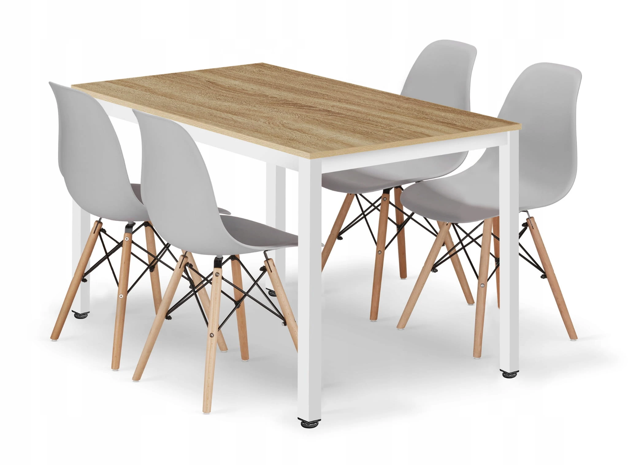 Zestaw stół prostokątny TESSA 120x60 dąb + 4 krzesła OSAKA szare
