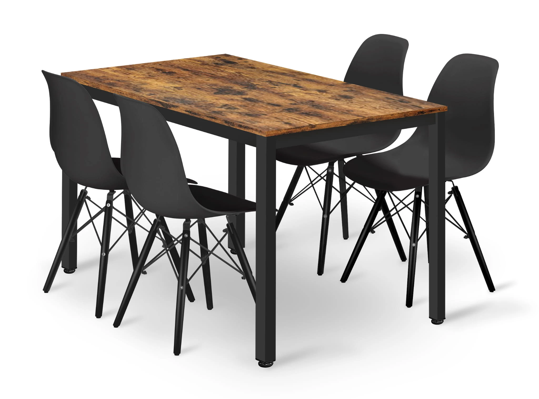 Zestaw stół prostokątny TESSA 120x60 rustykalny + 4 krzesła OSAKA czarne